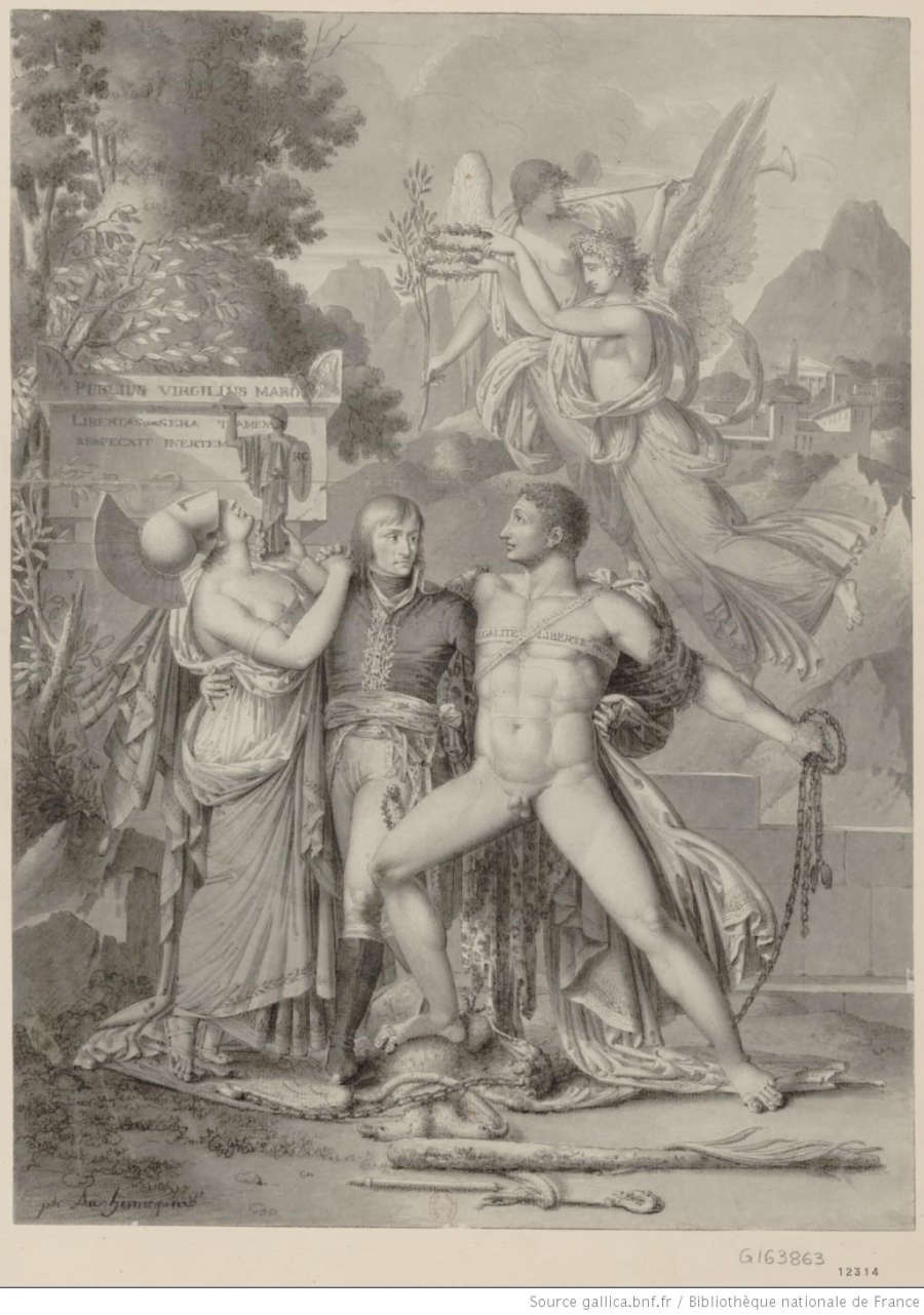 Philippe Auguste Hennequin Recto: Allegory in Honor of Napoleon and the Liberation of Italy (Allégorie sur la Liberté de l'Italie); Verso: Female figure with male youth holding a torch in front of a statute