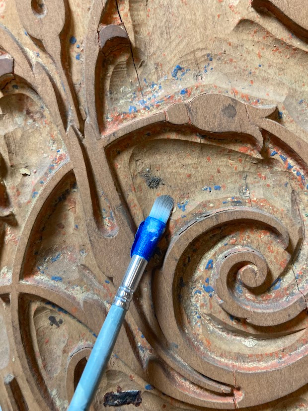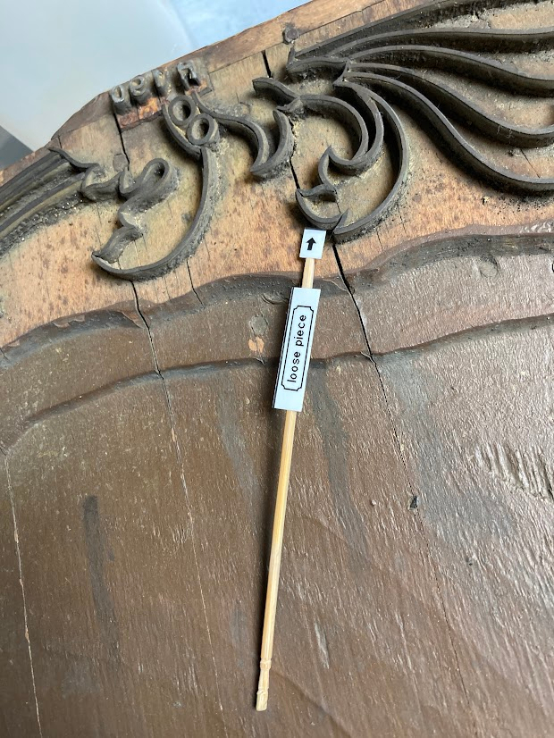 To glean more information about the wood that composes the printing blocks in the Huard Collection, we took samples from discreet areas that would not affect the aesthetic whole. Choosing the sample site is an important consideration. The samples must be a certain size (in our case no larger than a quarter of an inch) to see the structure of the grain vertically, horizontally, and radially. This data can tell us the genus of wood used and with that data we can figure out the specific physical properties. As of March 2024, we are still in the process of testing the wood, but we look forward to gathering more information when testing is complete.