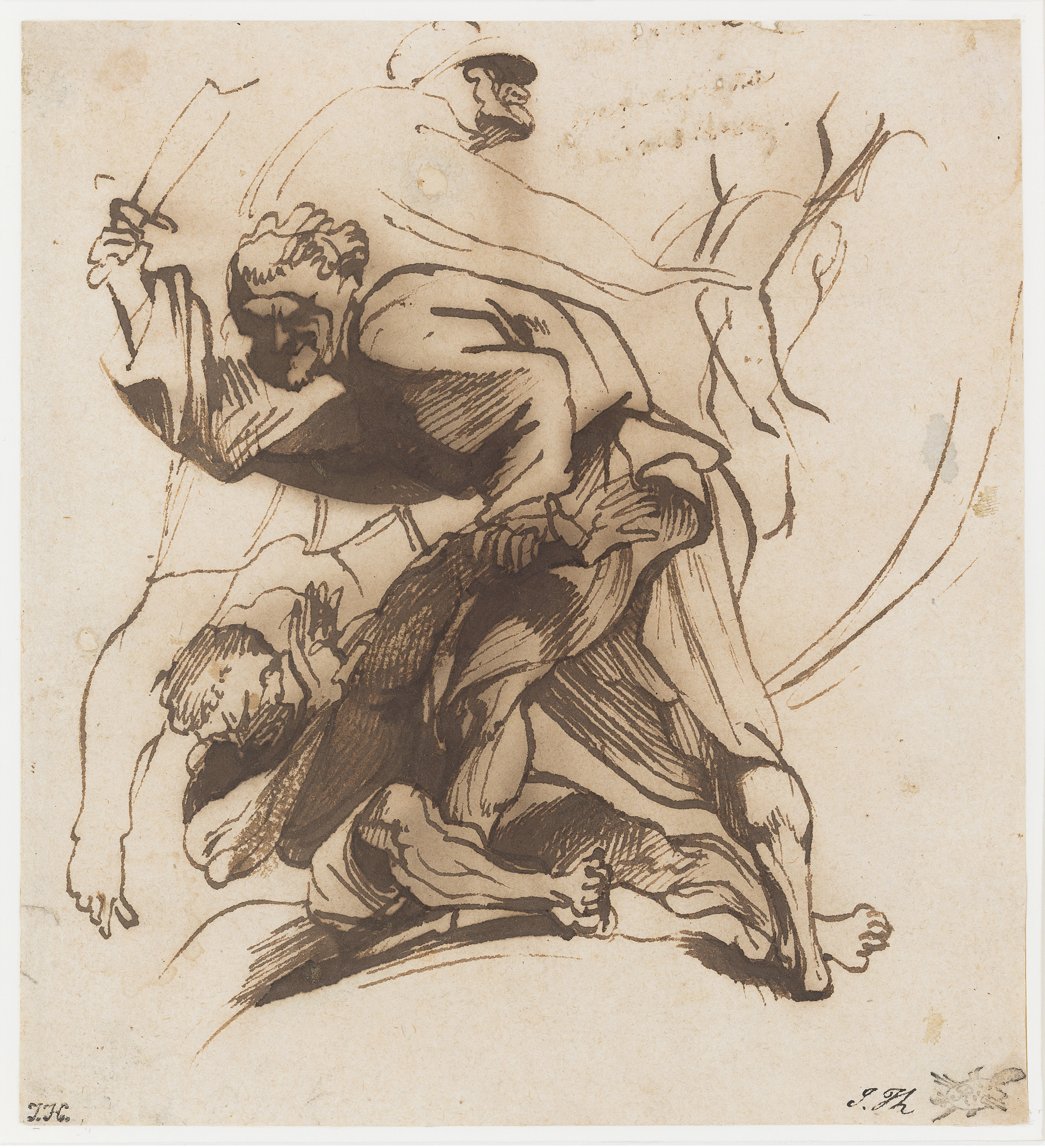 Anthony van Dyck, Peter and Malchus, ca. 1620–1621. Pen and brown ink; 15.6 x 14.2 cm (6 x 5 1/2 inches). V 95 (PK) Museum Boijmans Van Beuningen, Rotterdam. Loan: Stichting Museum Boijmans Van Beuningen 1940 (former collection Koenigs) / Creditline photographer: Studio Tromp