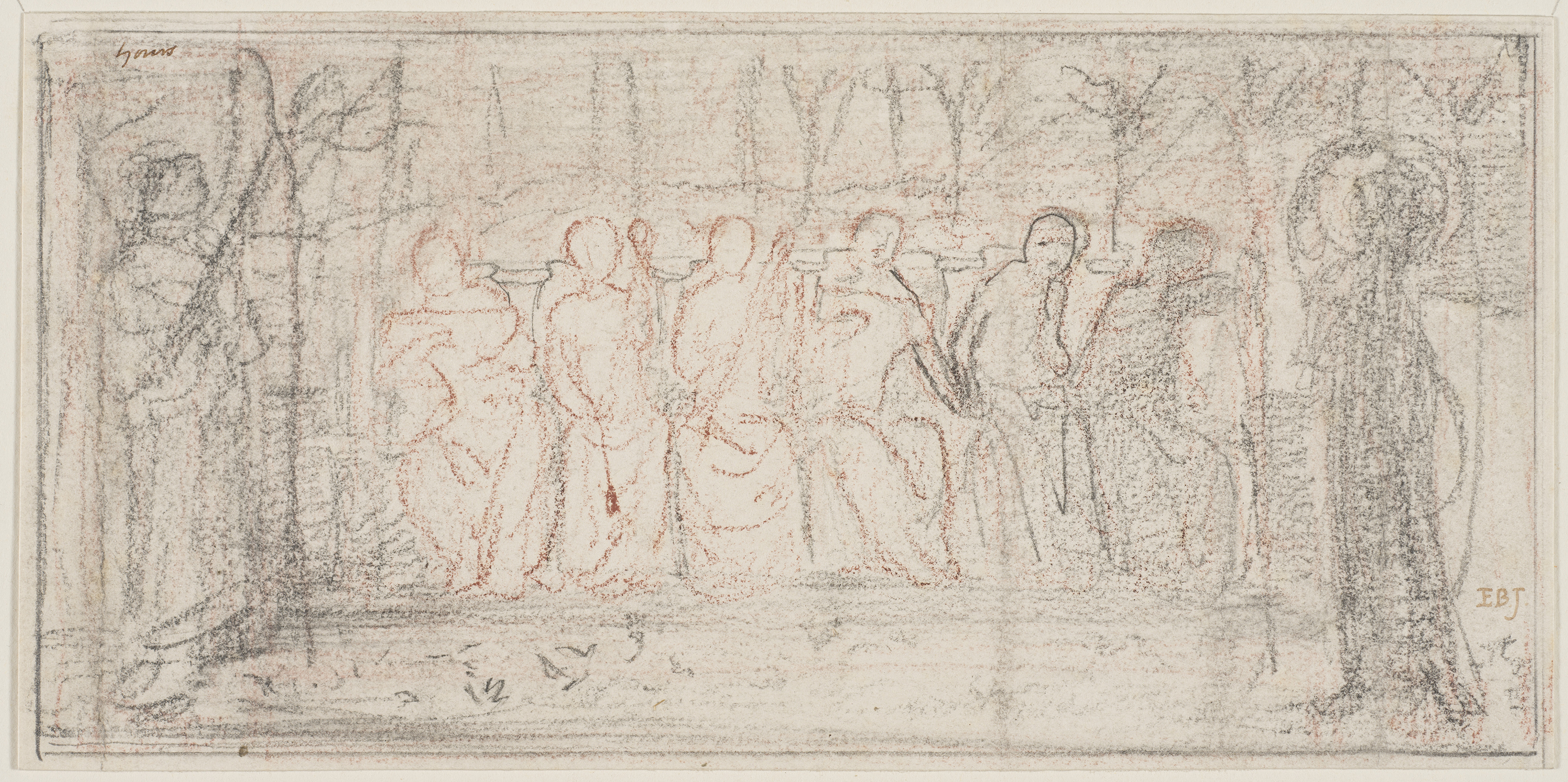 Edward Burne-Jones, The Hours, ca. 1865. Pencil; 11.2 x 23.3 cm (4 7/16 x 9 3/16 inches). Bequeathed by J. R. Holliday E.2875-1927. Victoria and Albert Museum