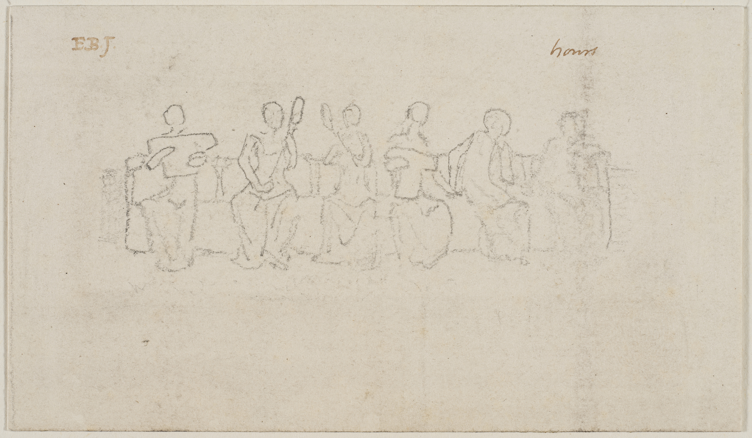 Edward Burne-Jones, The Hours, ca. 1865. Pencil; 3.2 x 8.5 cm (1 1/4 3 3/8 inches). Bequeathed by J. R. Holliday E.2876-1927. Victoria and Albert Museum