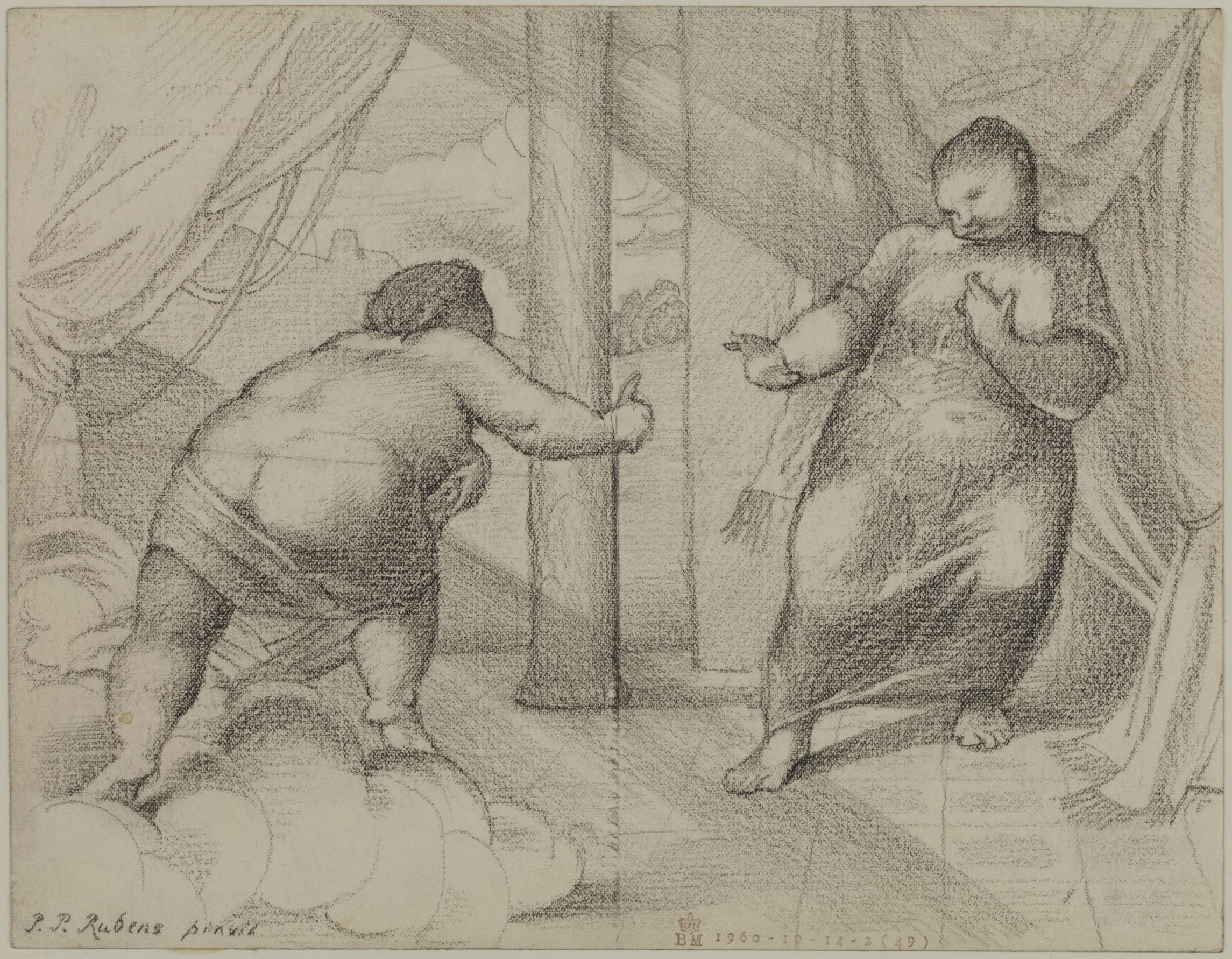 Edward Burne-Jones, Caricature of an Annunciation by Rubens, 1883–1889. Graphite on paper; 17.5 x 22.5 cm (6 7/8 x 8 7/8 inches). 1960,1014.2.49. The British Museum. © The Trustees of the British Museum
