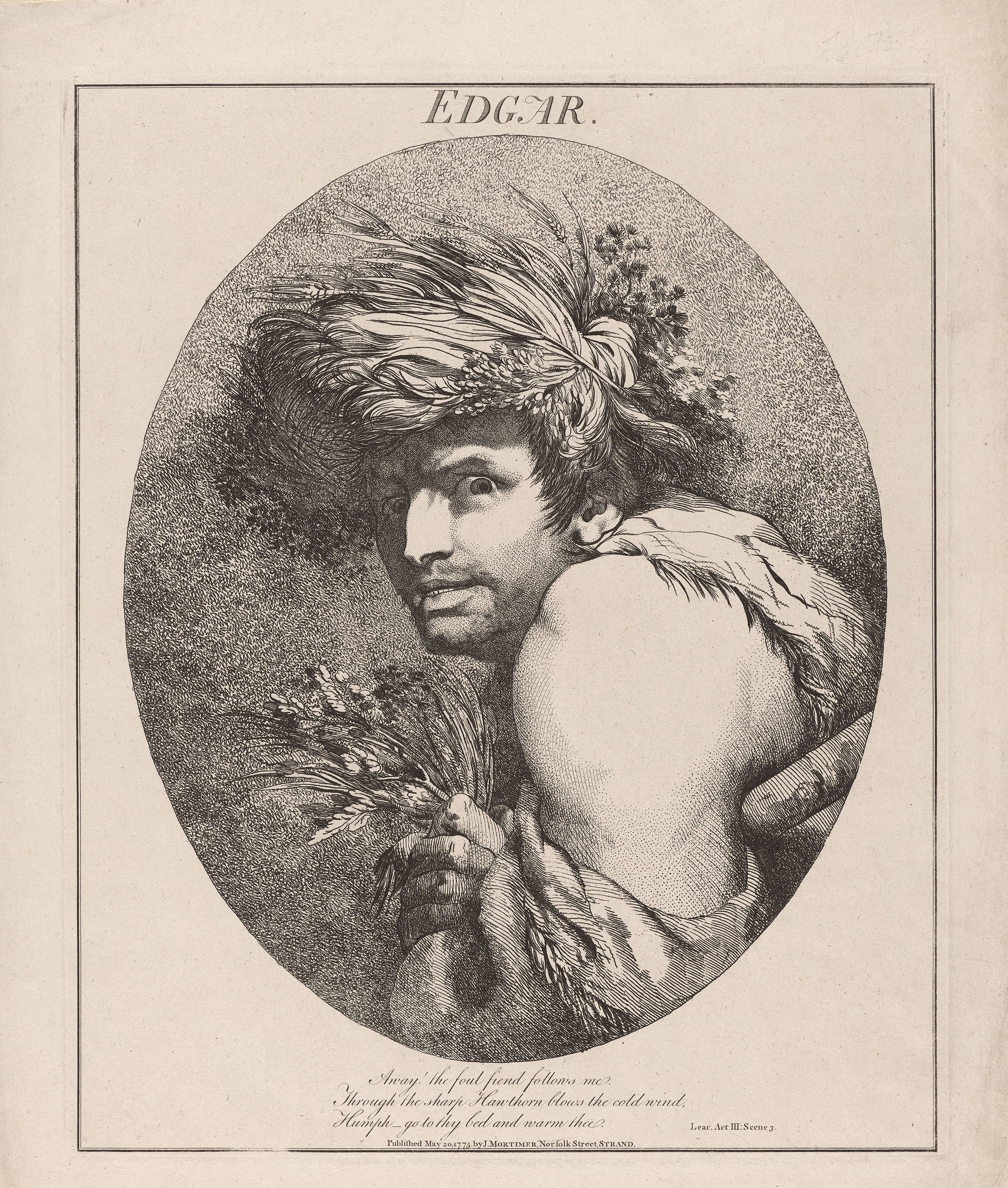 John Hamilton Mortimer, Edgar (King Lear, Act III, Scene 3), 1775. Etching; 40.5 x 32.9 cm (15 7/8 x 12 7/8 inches). Georgiana Sayles Aldrich Fund 75.033
