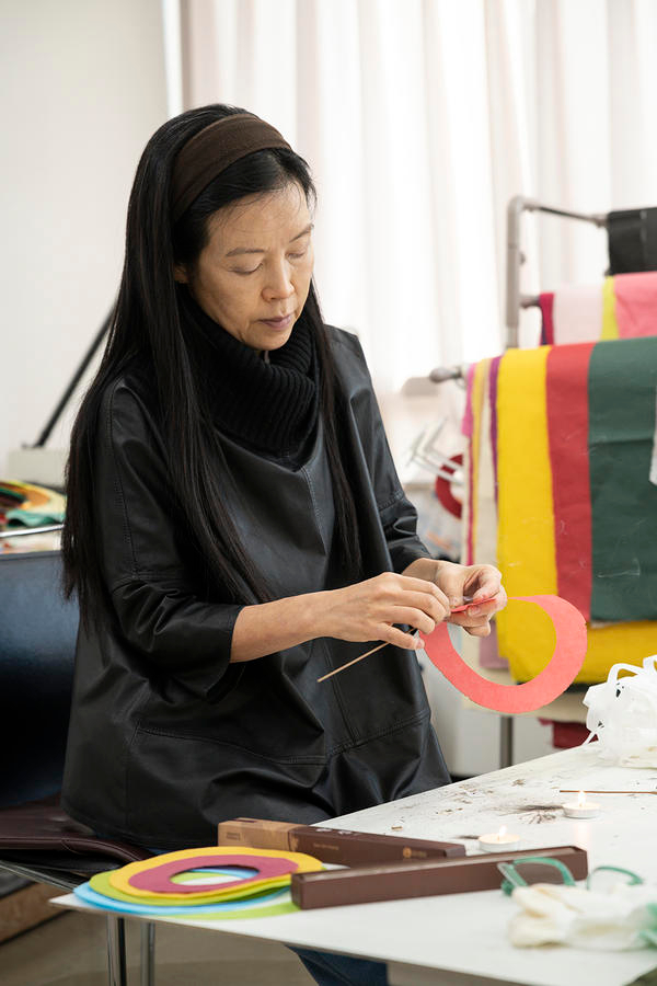 intricate, abstract ink paintings on Hanji (mulberry bark) paper. During the