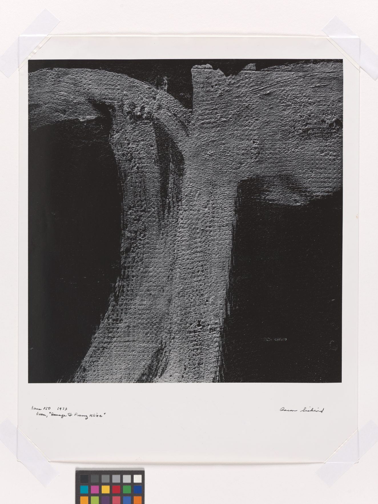 Siskind’s early training in literature and piano led him to see in photography the ambiguity, layered meaning, and terseness of poetry and a structure inspired by music. In his photographs of the 1940s, he discovered that he could transform subject matter by isolating and framing images from the exterior world to give him fresh and expanded meaning. The flat, rectangular space of the photograph became the arena for an “interior drama.”