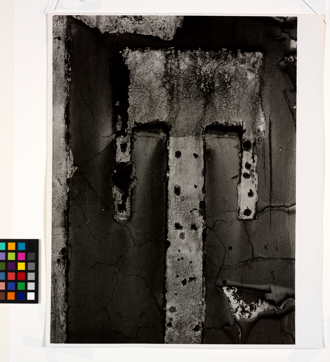 Siskind’s early training in literature and piano led him to see in photography the ambiguity, layered meaning, and terseness of poetry and a structure inspired by music. In his photographs of the 1940s, he discovered that he could transform subject matter by isolating and framing images from the exterior world to give him fresh and expanded meaning. The flat, rectangular space of the photograph became the arena for an “interior drama.”