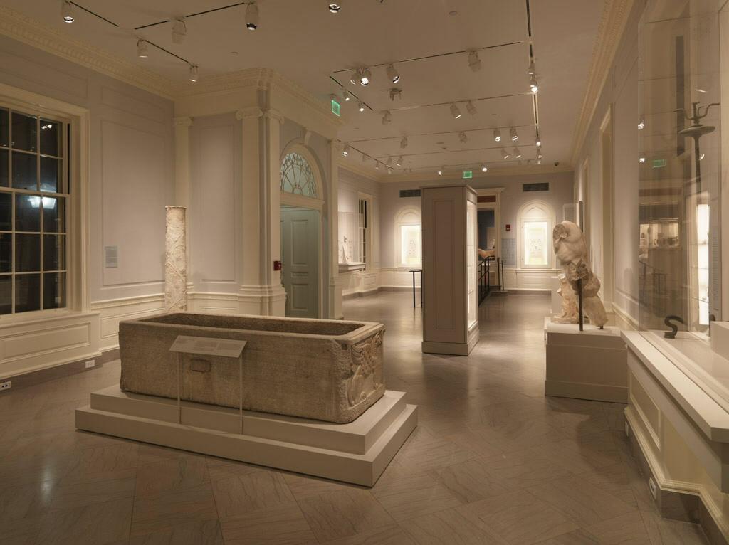 Roman marble portraits and sarcophagi, wall paintings from the vicinity of Pompeii, floor mosaics from the Roman province of Syria, as well as Etruscan and Italic ceramics and bronzes are on view in the Weiss Ancient Art Gallery. A gallery of ancient Greek art is organized around the themes of early Greece, gods and goddesses, religion, funerary customs, everyday life, and the symposium. A third gallery, devoted to materials and technology, elucidates various creative processes and explains the effects of time on materials including marble, ceramics, metals, and glass.