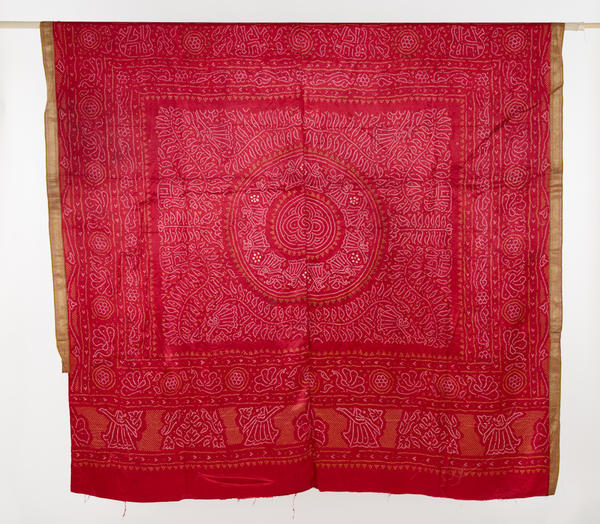 The cultures that use resist-dye techniques have distinctive names for each variant, some of which are now in common use around the world. Bandhani is an Indian term for tie-dyeing cloth after it is woven, a technique known as shibori in Japan and as plangi in Indonesia. Batik is the Indonesian word for drawing or stamping a wax-based resist onto woven cloth. Ikat, another Indonesian word, is the process of tie-dyeing groups of threads (warp, weft, or both) before weaving, called kasuri in Japan. The Indonesians use tritik to define stitched resists, while the Japanese have special words for clamped resists (itajime) and stenciled paste resists (katazome). Resist-dyeing in any of its forms is by definition an exacting and intricate process, and the textiles on display here testify to the ingenuity and skill of many anonymous textile artists throughout Asia.