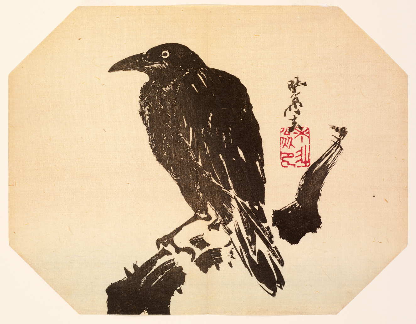 The Museum's Abby Aldrich Rockefeller Collection offers stunning examples of the various ways print artists from the late 18th-century transformed ideas form the painting and craft traditions into innovative painting techniques. Especially rare and remarkable are three prints by Ito Jakuchu (1716-1800), known as one of the great individualist or eccentric artist of the 18th century, from a series called Kacho-zu (Pictures of Flowers and Birds) produced in 1771. The prints simuklate stone-rubbing (kappazuri) probably adapted from a textile patterning technique. ALso on view are prints by Mori Ransai (1740?-1801), Shibata Zeshin (1807-1891) and Kawanabe Kyosai (1831-1889), three artists influenced by different painting school styles of their day. Ransai preferred the painting style of the Chinese master Shen Nanping (fl. mid-18th century), Zeshin began as a student of the Kyoto-Osaka based Shijo School-style of painting, and Kyosai established himself as a Kano School-style painter and print artist.