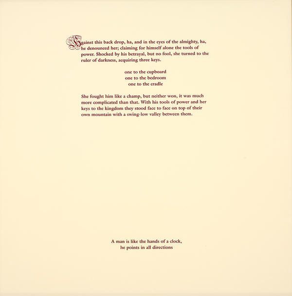 In several of the works, memory helps to portray individuals. Donna Bruton (current RISD Faculty), in homage to her father, paints a psychological landscape filled with remembrances of comfort and stability in Me and My Dad. Yamamoto’s Eyes, Dark presents a series of fifteen details of romantic longing in a photographic composition that evokes erotic memories of a girlhood friendship. Milhazes’s artist’s book explodes like a kaleidoscope of forms and colors. The book is a celebration of her relationship with her home, Rio de Janeiro, and in it she responds to the lyrics of twelve traditional and contemporary Brazilian songs that left their mark on her.