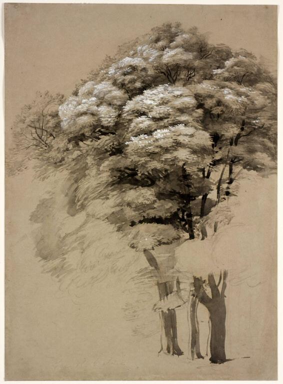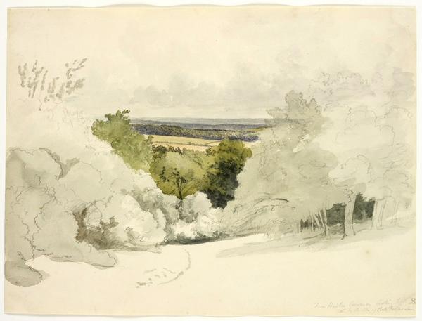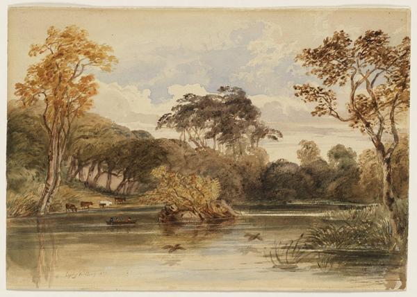In nineteenth-century Britain, the versatility and availability of watercolor paints made it an ideal medium for professional and amateur practitioners alike to contemplate and explore the simple pleasures and profound wonders of the natural world. Balancing an empirical desire for "naturalism" and virtuosic attention to detail with intensely expressive visions, practitioners distinguished themselves by specializing in particular compositions or objects. They experimented with a broad range of contrasting techniques, from light translucent washes of color to opaque strokes of pigment augmented by gouache. Especially striking is stippling, the application of minute dots of color close together, which creates a diaphanous chromatic effect.