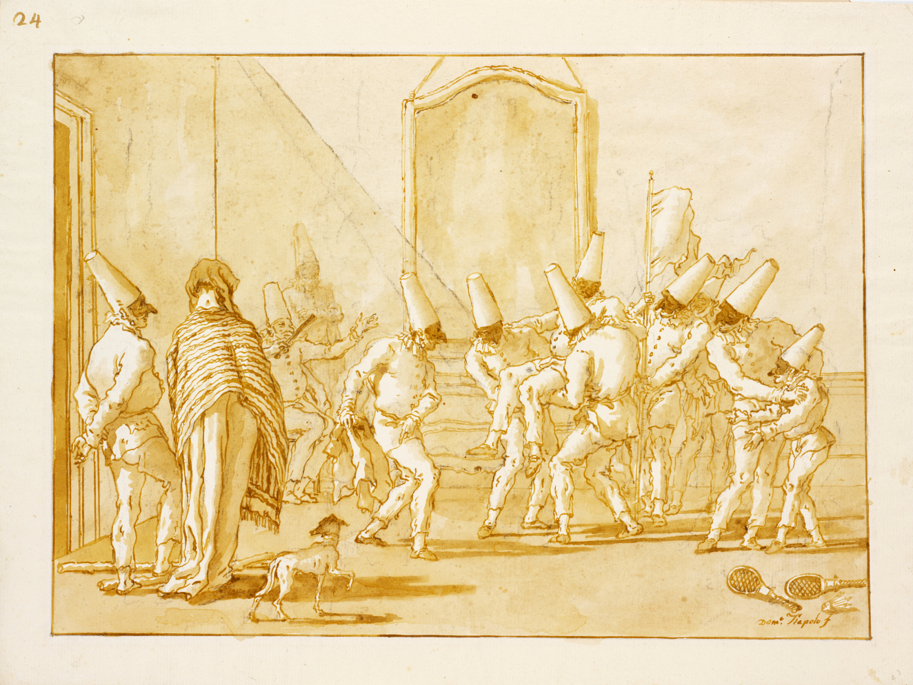 By the end of the century, James Gillray's political caricatures were seen as emblematic of British freedom of the press. The title of this exhibition, "Caricatura and Character," is inspired by a print published by William Hogarth in April 1743. Hogarth vehemently disliked the influence of foreign art and foreign artists in Britain and disparaged both the style and content of Italianate caricatura, preferring the term "characters." Rejecting the loosely drawn lines of caricatures, Hogarth worked with elaborate crosshatching and engraving techniques to emphasize the importance of his moral tales. Despite Hogarth's opposition, the appeal of caricature was too strong. The distinction between caricatures of individuals and satirical drawings of social types was lost, and the combination of British printmaking and Italian style produced a new genre of art, which delights us still today.
