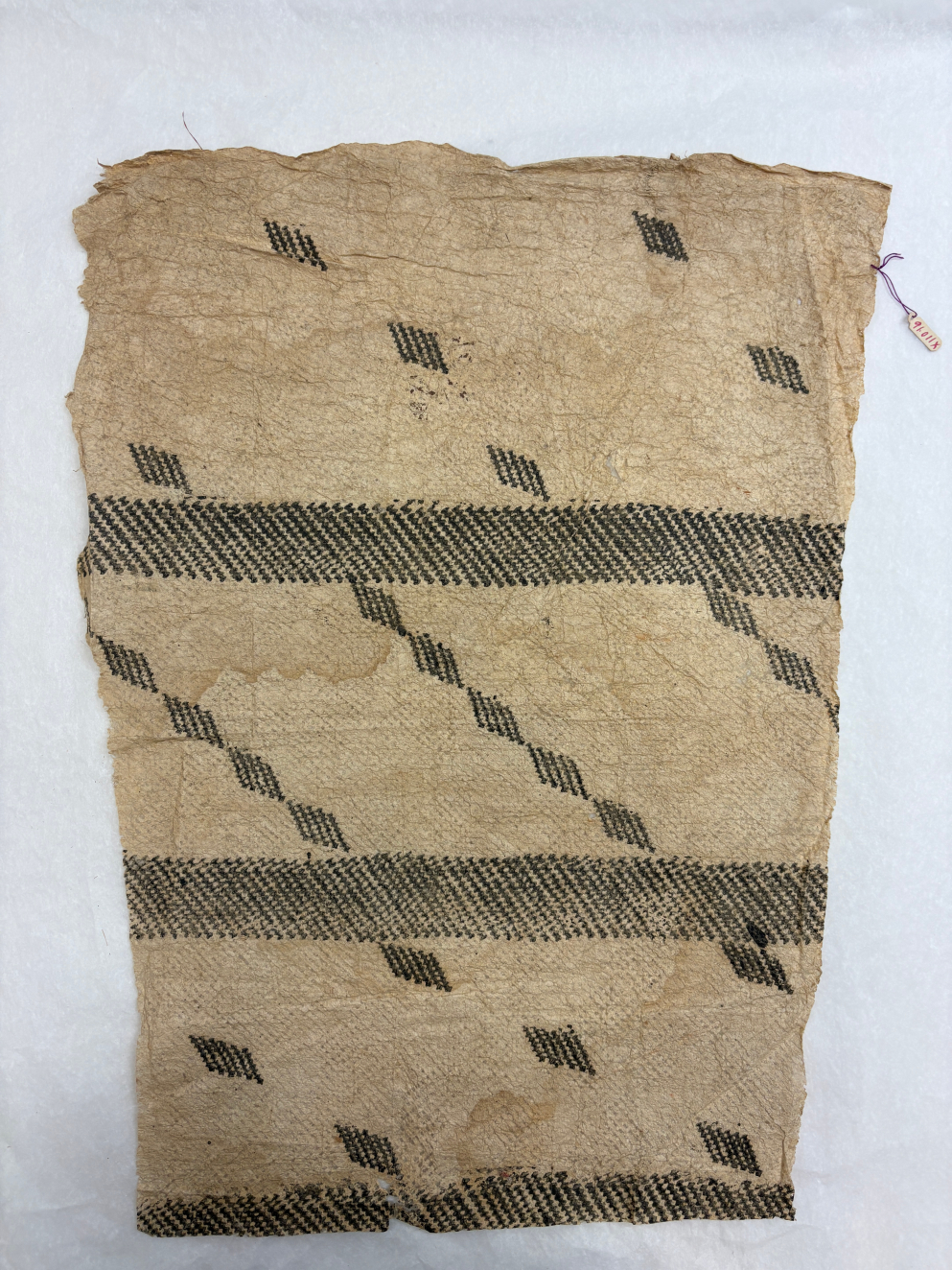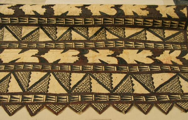 Unlike most textiles, which are made of interworked yarns, beaten barkcloth is made of strips of the inner bark of trees such as the paper mulberry, breadfruit, or fig, pounded together into a smooth and supple fabric. It is an ancient craft, practiced in southern China and mainland Southeast Asia over 5,000 years ago. From there, the skill spread to eastern Indonesia and the Pacific Islands. While the technique is also known in South America and Africa, it is most closely associated with the islands of Polynesia.