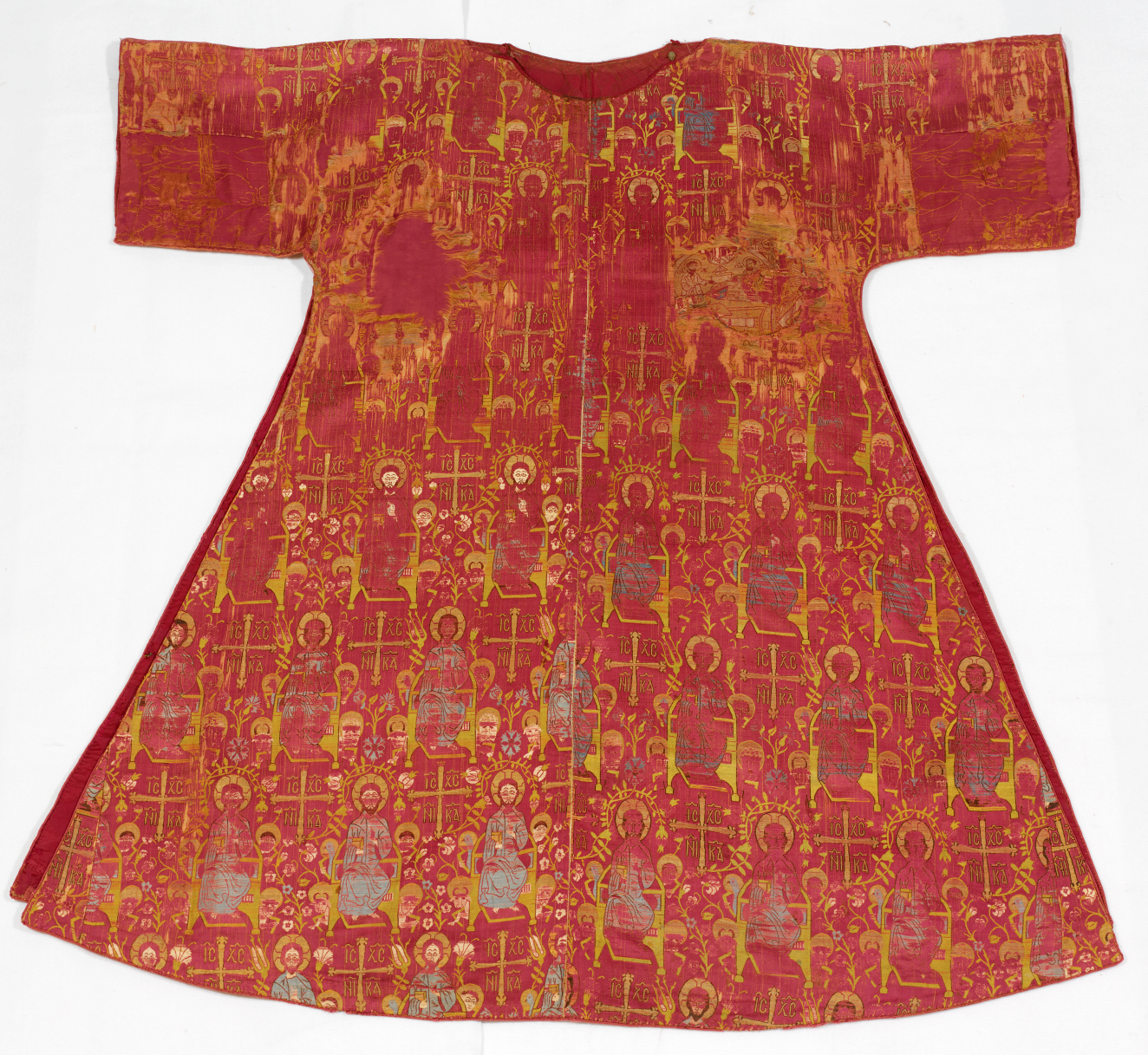 The textile arts have long been used in religious observance throughout the world. Embroidered, woven, painted, and printed fabrics have served and still serve as vestments, decorations, offerings, and devotional or talismanic objects in many faiths. This exhibition from the permanent collection of the Department of Costume and Textiles includes such cloths and clothing from across Asia: Indonesia, Burma, Thailand, China, Japan, and Turkey. Buddhism, Christianity, Daoism, Hinduism, and Islam are represented, as well as belief systems rooted in the natural environments of indigenous cultures. Although forms and symbolism differ among the religions represented by these objects, there is also common ground. The visual spectacle of ritual is enhanced for the worshipper through the use of luxurious textiles for vestments and decorative hangings, particularly those made of lustrous silk and metallic threads. Elaborate vestments focus attention on the celebrant, helping to create an aura of power and authority. Also, individuals may make, wear, or use textiles with sacred imagery or religious purpose, thereby proclaiming their beliefs or identities. In many cases, specific colors or patterns are reserved for a particular ritual or season.
