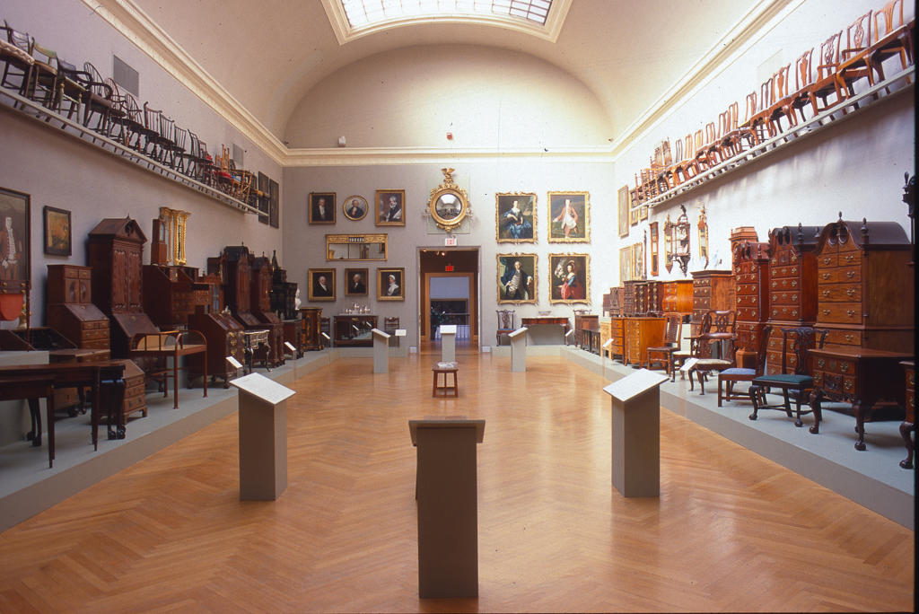 Installation view of Focus on Form: American Furniture from the Museum's Collection on view 04-01-1998 through 05-21-2000 at the RISD Museum. Focus on Form American Furniture from the Museum's Collection April 1, 1998 - May 21, 2000 Installation view of Focus on Form: American Furniture from the Museum's Collection on view 04-01-1998 through 05-21-2000 at the RISD Museum. Introduction Thomas Michie Exhibition images Related Objects Unknown Maker, American Desk Vose & Coates Pier table Unknown Maker, American Slab Table Duncan Phyfe Sideboard Sydney Richmond Burleigh Shakespeare chest Caleb Wheaton Tall Clock James Reynolds Dressing Table No Image Available Unknown Maker, American Child's Armchair More objects +