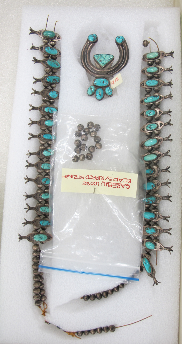 The lifestyles of Native Americans are a reflection of their relationship to nature. They made use of the natural resources available and fashioned these resources into objects suited to their way of life, as illustrated by the containers in this gallery. The rawhide containers used by the nomadic buffalo-hunting tribes of the Plains are one example of how the parts of the buffalo were used; in this case, the hide was fashioned into containers suitable for traveling. On the other hand, the Zuni water jar, made of the plentif ul clay of the Pueblo region, suited their more settled, agrarian lifestyle.
