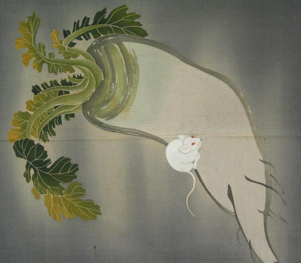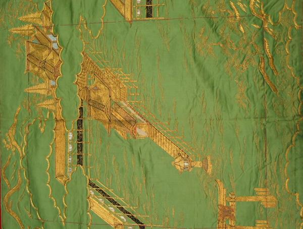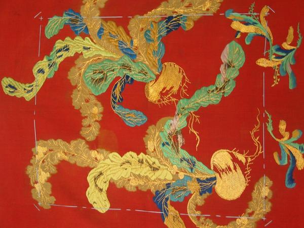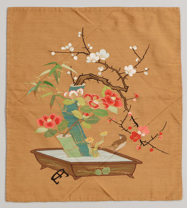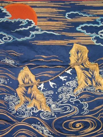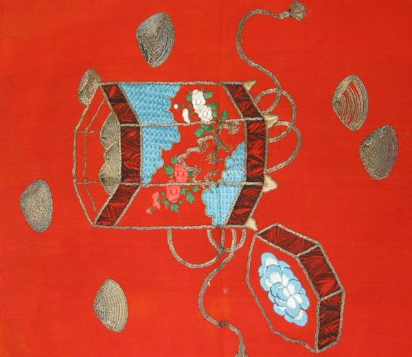 During the Edo period in Japan (1615-1867) it was customary to give gifts on many occasions, including weddings, births, a child's first day of school, and the Thirteenth Year Ceremony celebrating the attainment of manhood. Annual festivals like the celebration of the New Year, the Cherry Blossom Festival, or the Tengin Festival also called for the presentation of gifts. WIth typical Japanese ceremony, these gifts were covered with a rectangular cloth or fukusa, which was later returned to the giver. The design of the fukusa was specific to the occasion for which the gift was being presented, and, on a more symbolic level, served as an indication of the giver's wealth, scholarship, aesthetics, and cultural sensitivity.