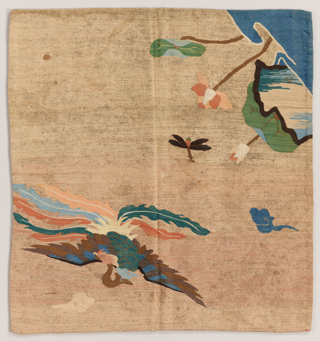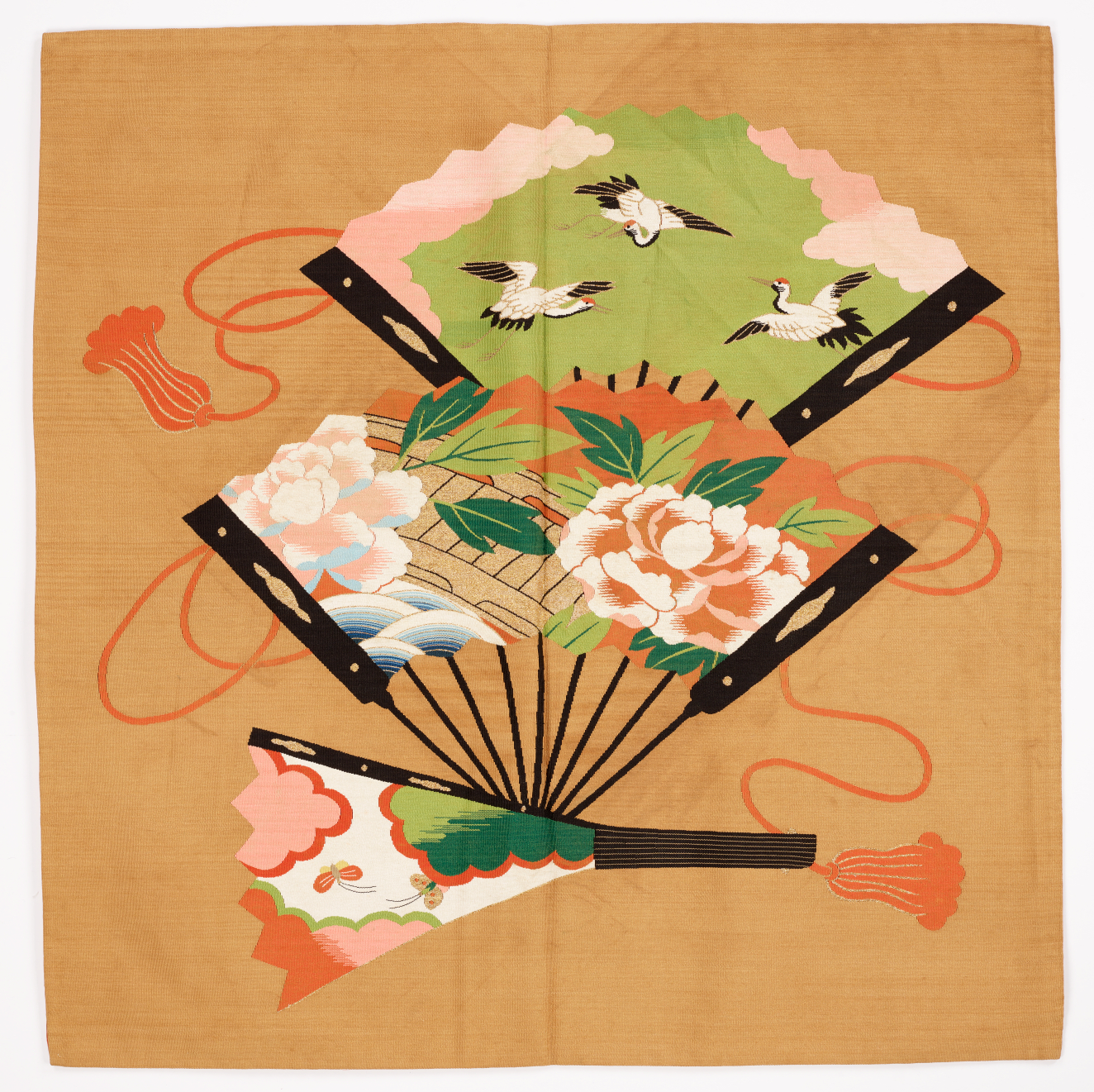 During the Edo period in Japan (1615-1867) it was customary to give gifts on many occasions, including weddings, births, a child's first day of school, and the Thirteenth Year Ceremony celebrating the attainment of manhood. Annual festivals like the celebration of the New Year, the Cherry Blossom Festival, or the Tengin Festival also called for the presentation of gifts. WIth typical Japanese ceremony, these gifts were covered with a rectangular cloth or fukusa, which was later returned to the giver. The design of the fukusa was specific to the occasion for which the gift was being presented, and, on a more symbolic level, served as an indication of the giver's wealth, scholarship, aesthetics, and cultural sensitivity.