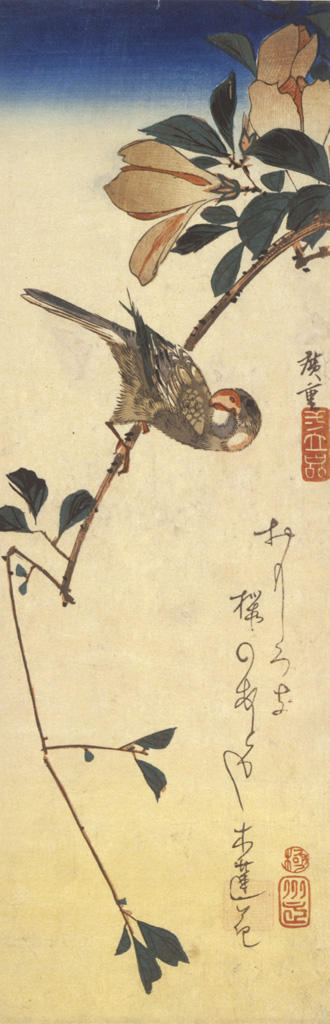Hiroshige III April 13 - June 23, 1989 Introduction Related Objects Utagawa Hiroshige 歌川広重 Java Sparrow and Lily Magnolia, Edo Period Utagawa Hiroshige 歌川広重 Japanese White-eyes and Maples (Benikaede ni mejiro), Edo (Japanese period) Utagawa Hiroshige 歌川広重 Autumn: Judo's Chrysanthemums in a Deep Ravine in China (秋 漢土幽谷寿童の菊 Aki: Kando Yūkoku Judō no Kiku), Edo Period Utagawa Hiroshige 歌川広重 Cockerel umbrella and morning glories (Asagao ni tori to kasa), Edo Period Utagawa Hiroshige 歌川広重 Mandarin Ducks in Icy Pond (Ochiba ni kôrimizu no oshidori), Edo Period Utagawa Hiroshige 歌川広重 Java Sparrow and Lily Magnolia (Mokuren ni bunchô), Edo (Japanese period) Utagawa Hiroshige 歌川広重 Cockerels Chicks and Spiderworts, Edo Period Utagawa Hiroshige 歌川広重 Goose on Riverbank, Edo Period More objects +
