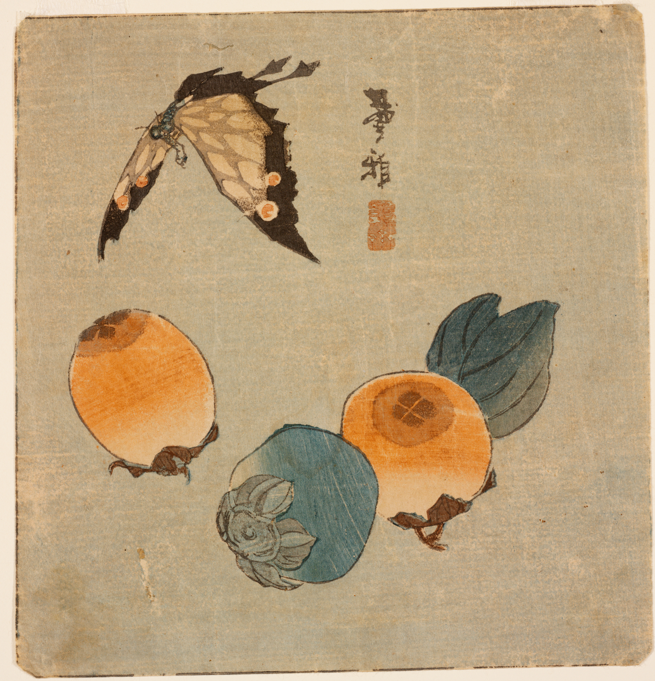 The stylistic treatment of grasses and insects in this group of early nineteenth-century prints mirrors artistic influences of eighteenth-century painting. The prints by Shunkei (fl. 1840s), an Osaka artist and pupil of Mori Sosen (1747-1821), reflect his teacher's preference for rendering realistic surface description. The ehon or picture book prints balance a finely textured, decorative surface (as seen in the use of mica dust for butterfly wings) with close attention to descriptive surface textures and linear details that verge on scientific observation or illustration.