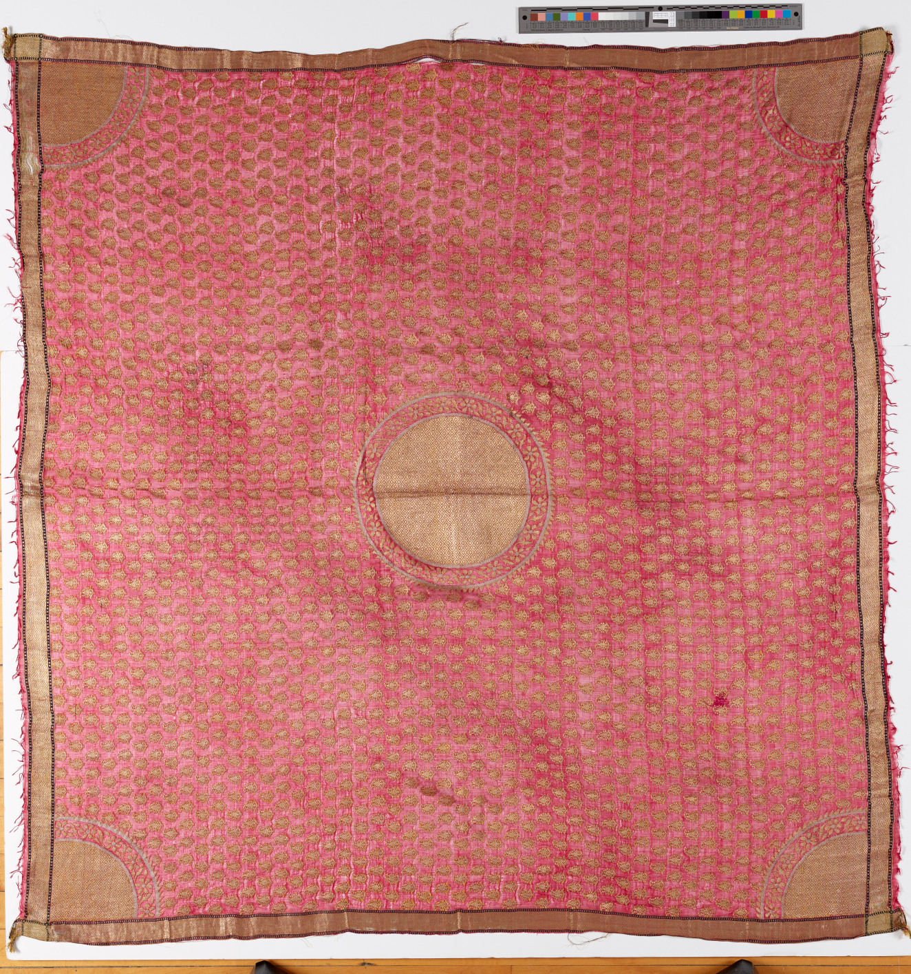 Some scholars theorize that the boteh developed in ancient Near Easten cultures from a wing or leaf form, evolving into a cypress tree or tree of life. Others track its beginning to the image of a single flower flanked by leaves, established in Persian art by the 1600s and soon after blossoming in textiles produced in northern India under the patronage of Mughal emperors. In this display, the evolution of the design is shown in Indian pieces spanning 200 years. Whether originating in leaf or flower, the boteh became more elaborate as it crossed cultures.