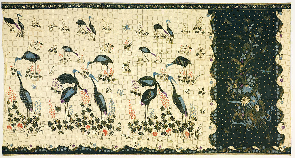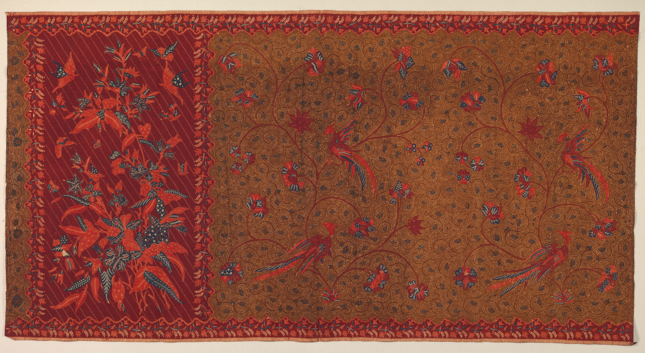 Lucy Truman Aldrich collected more than 30 batiks while traveling in Indonesia in the 1920s. Batiks are patterned fabrics dyed using a traditional Indonesian wax-resist technique. The bright colors and innovative designs of these six indische-style examples set them apart from the muted indigos and browns of traditional court batiks.