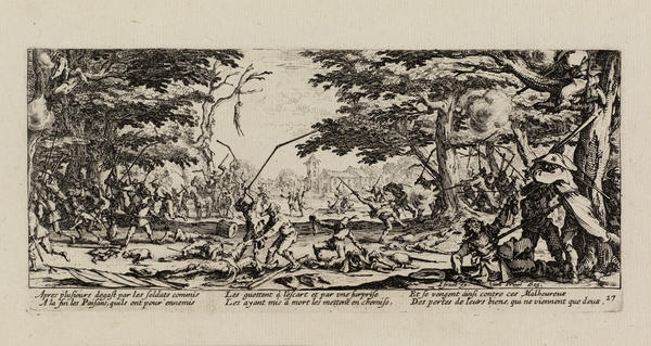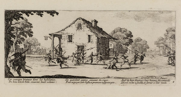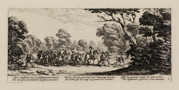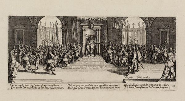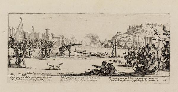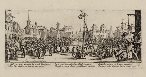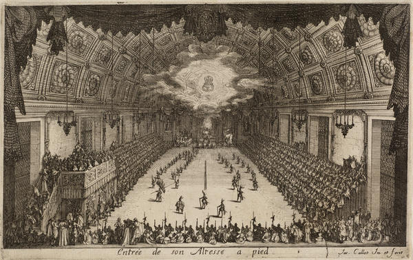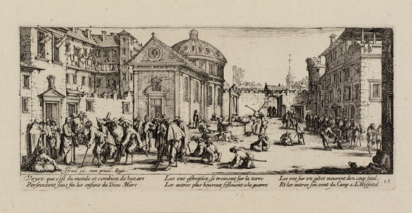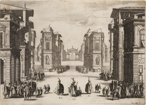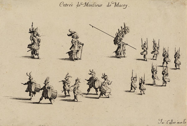 Born into a noble family in 1592 in Nancy in the Duchy of Lorraine (now France), Callot traveled to Rome at the age of sixteen to learn printmaking. By 1614, he was in Florence working for Cosimo II de’ Medici, Grand Duke of Tuscany. After the death of the Grand Duke in 1621, Callot returned to Nancy, where he entered the service of the dukes of Lorraine and made prints for other European monarchs and the Parisian publisher Israël Henriet.