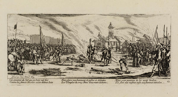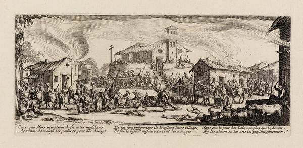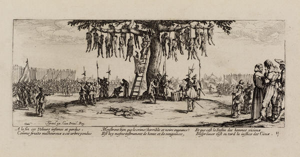 In Callot’s theatrical world of princes, paupers, dancers, and dwarves, virtue and evil coexist. Its inhabitants pursue peaceful or frivolous pleasures in one moment only to be confronted with - or perpetrate - torturous death in the next. Callot’s stage-like compositions might distance us from direct emotional confrontation, but they emphasize life as a performance: one in which humankind’s edifying qualities exist alongside the ridiculous and grotesque.