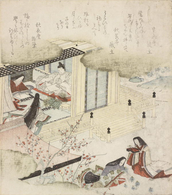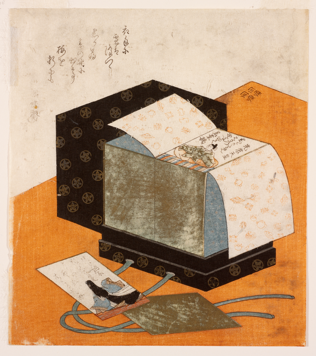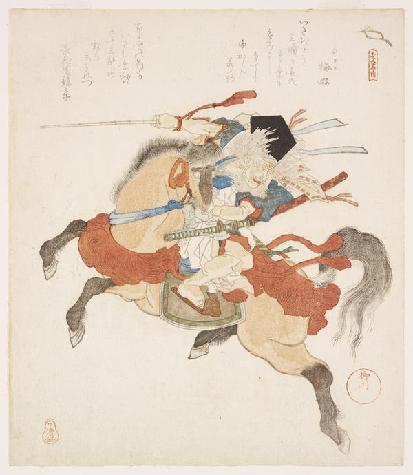 Japanese Surimono Prints November 28, 1986 - January 25, 1987 Introduction Related Objects Yanagawa Shigenobu 柳川重信 Asahina with a Turtle (from a Soga play), Edo Period Totoya Hokkei 魚屋北渓 Ushiwakamaru Defeats Benkei in a Game of Sugoroku, Edo Period Ryūryūkyo Shinsai 柳々居辰斎 Lobster and Cup, Edo Period Yuitsusai Lacquered Box of Poem Cards, Edo Period Ryūryūkyo Shinsai 柳々居辰斎 Cart with Symbols of Longevity, Edo Period Baien 梅園 Mirror and Rouge Cup, Edo Period Bokutei Hyakuba 牧亭百馬 Stirrup, Edo Period Katsushika Hokusai 葛飾北斎 Hatakeyama Shigetada Carrying a Horse, Edo Period More objects +