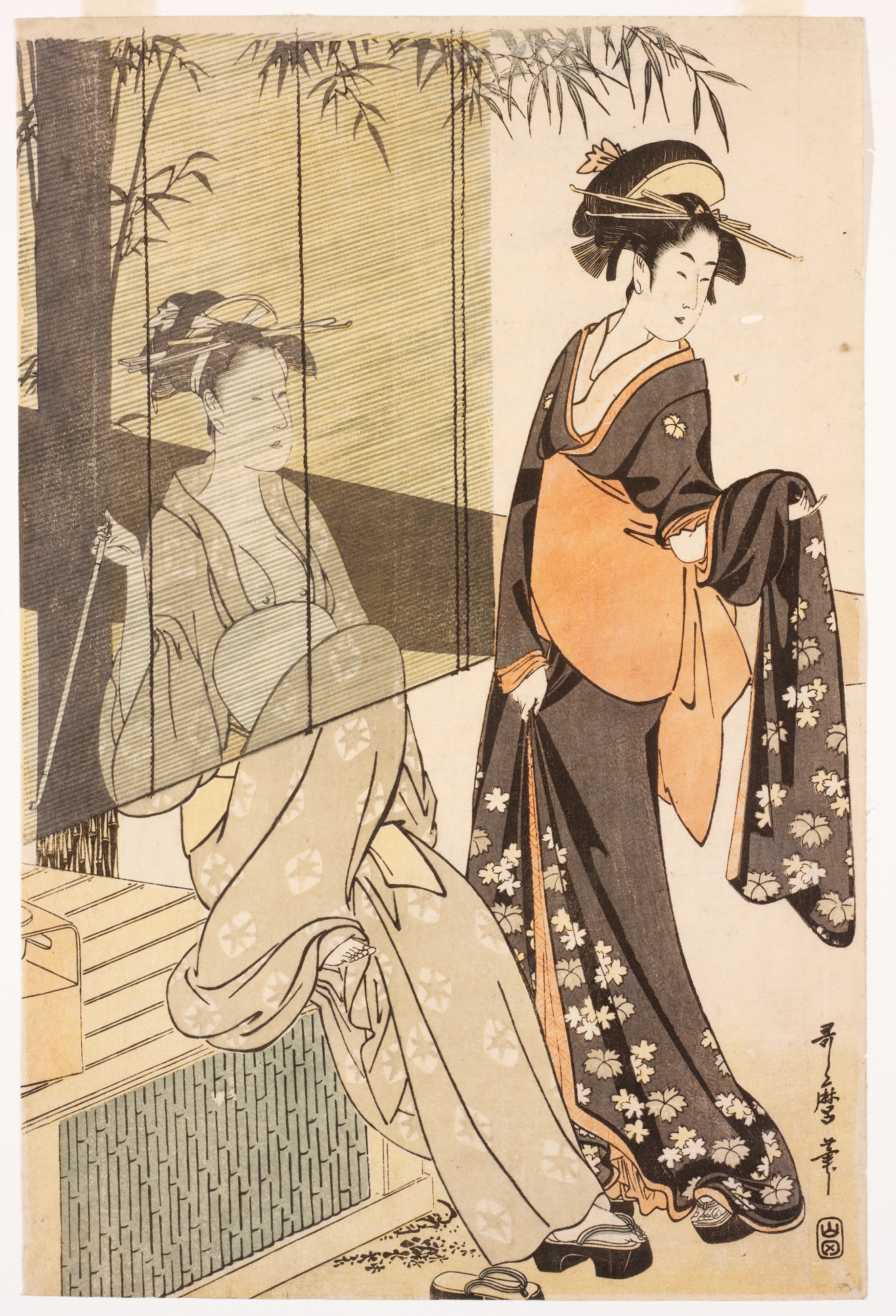 Left panel of the triptych Washing and Stretching Cloth (Arai-bari), Edo Period