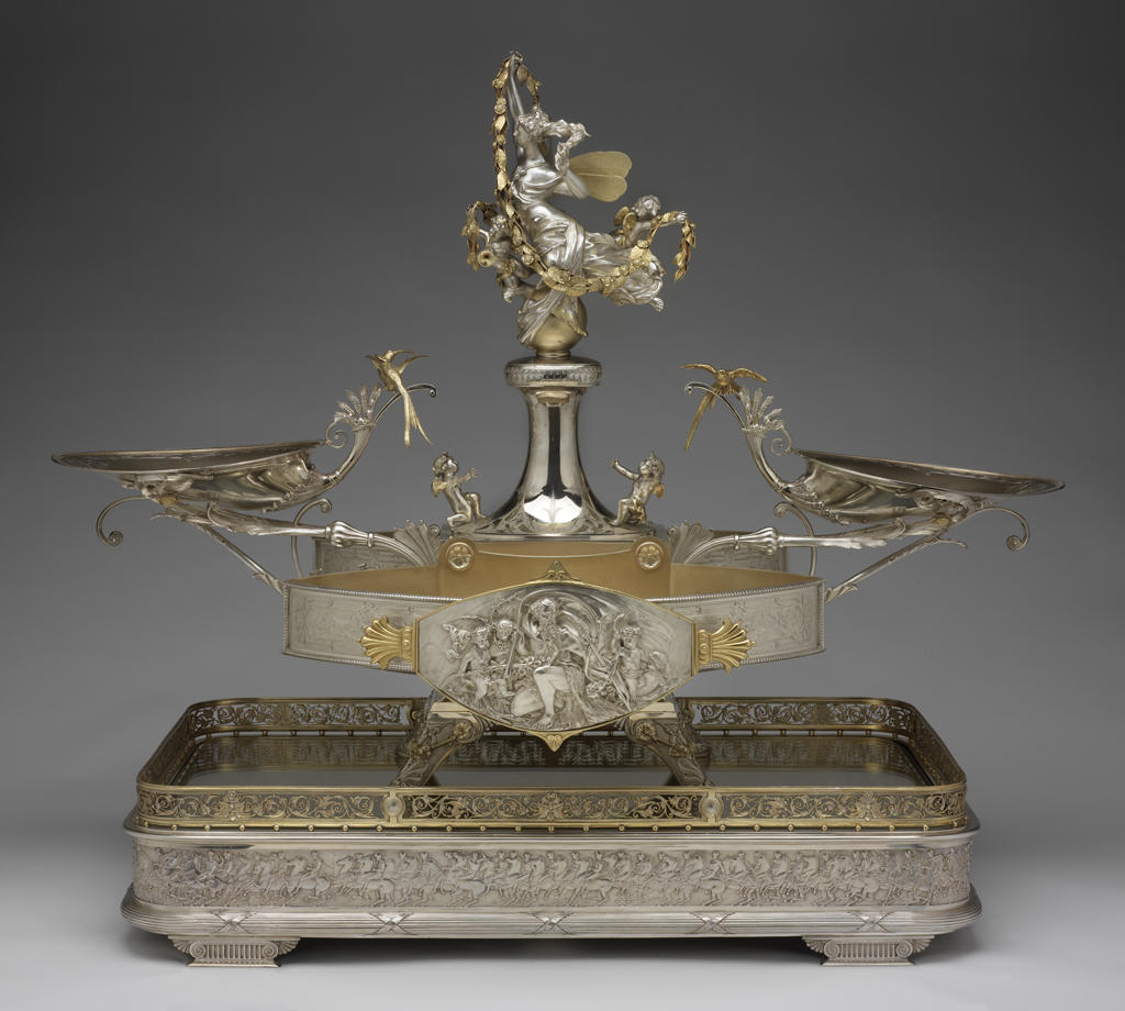 This show features objects from pre-Revolutionary times to the early 20th century, including John Singleton Copley’s grand manner portrait of Governor Moses Gill, George Bellows’ rugged painting of New York’s North River in winter, finely designed furniture with hand-carved motifs from Newport’s Townsend and Goddard workshops that rivaled European examples in the 18th century, and the glorious excess of monumental silver works by Providence’s Gorham Manufacturing Company that represented the city’s ambitions into the 19th and 20th centuries.
