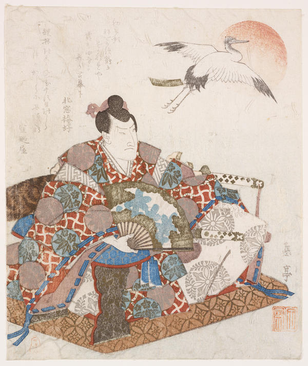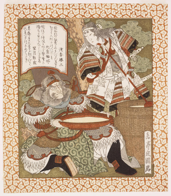 Many of the selections in this exhibition are from a group of 88 prints presented to the Museum as a donation by George Pierce Metcalf in 1956. The group came from a single Osaka album, one of at least two that were presented as parting gifts to Raphael Pumpelly, a well-known geologist, during his travels in Japan in 1862-63, soon after that country opened its doors to the West. Not only are these some of the earliest prints to leave Japan, but the album's unique association with Osaka is confirmed through the inclusion of Osaka poets and printmakers whose works are not as well known as those from Edo (modern Tokyo). The numerous kyoka ("mad verse") poems by Tsurunoya Osamaru (d. 1839) and members of his circle, as well as the appearance of a tsuru ("crane") seal on many of the prints, make it clear that his patronage and that of his fellow poets provided the impetus for the creation of many of these works.