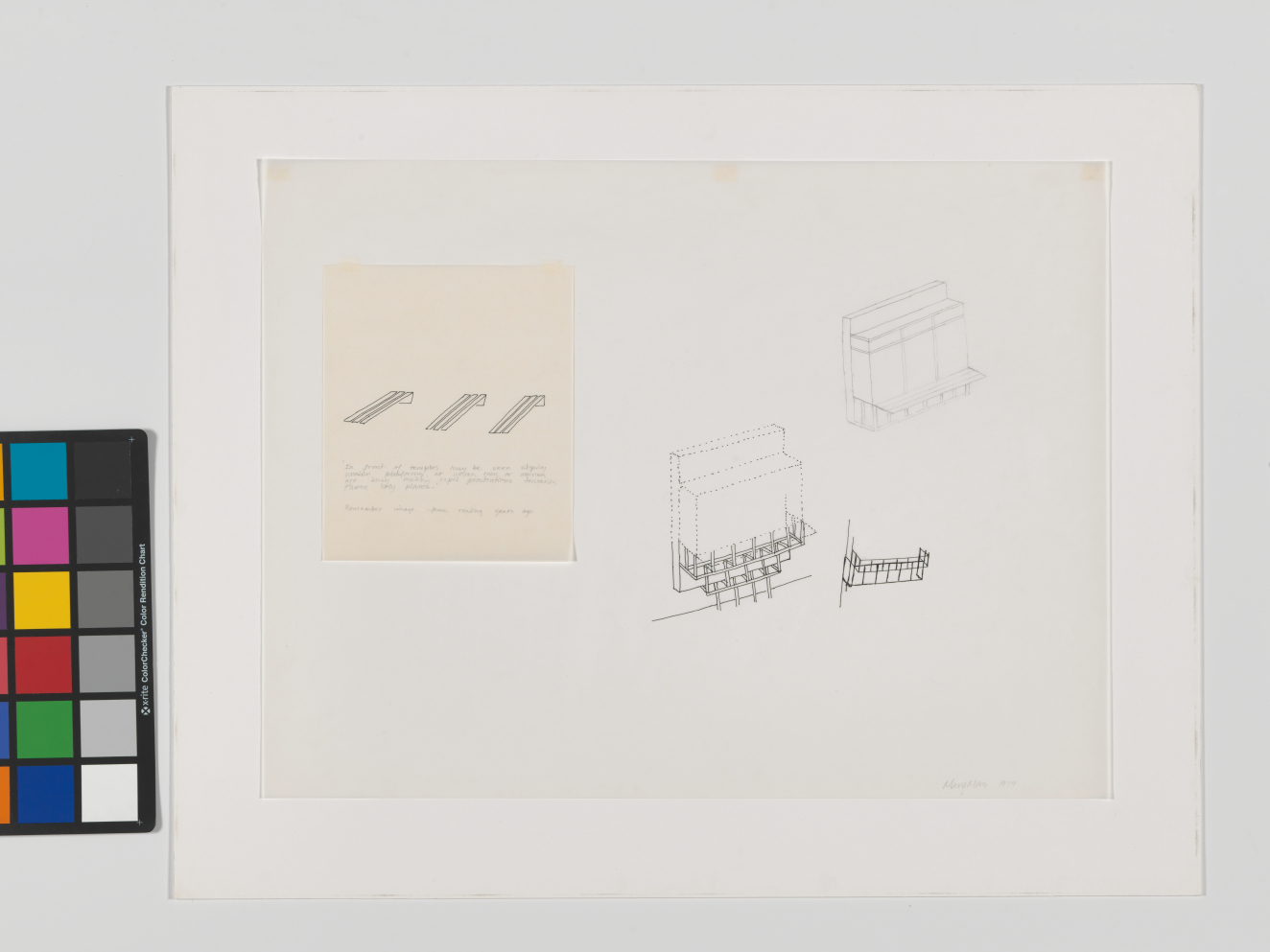 This major sculpture by Mary Miss (American, b. 1944) and its studies are from the Museum's permanent collection and are on view to complement the Chace gallery exhibition, Drawing Ambience: Alvin Boyarsky and the Architectural Association. Miss's work is represented in Drawing Ambience with a study for a site-specfic outdoor sclupture that she created for the Architectural Association School of Architecture (AA) in London's Bedford Square in 1987.
