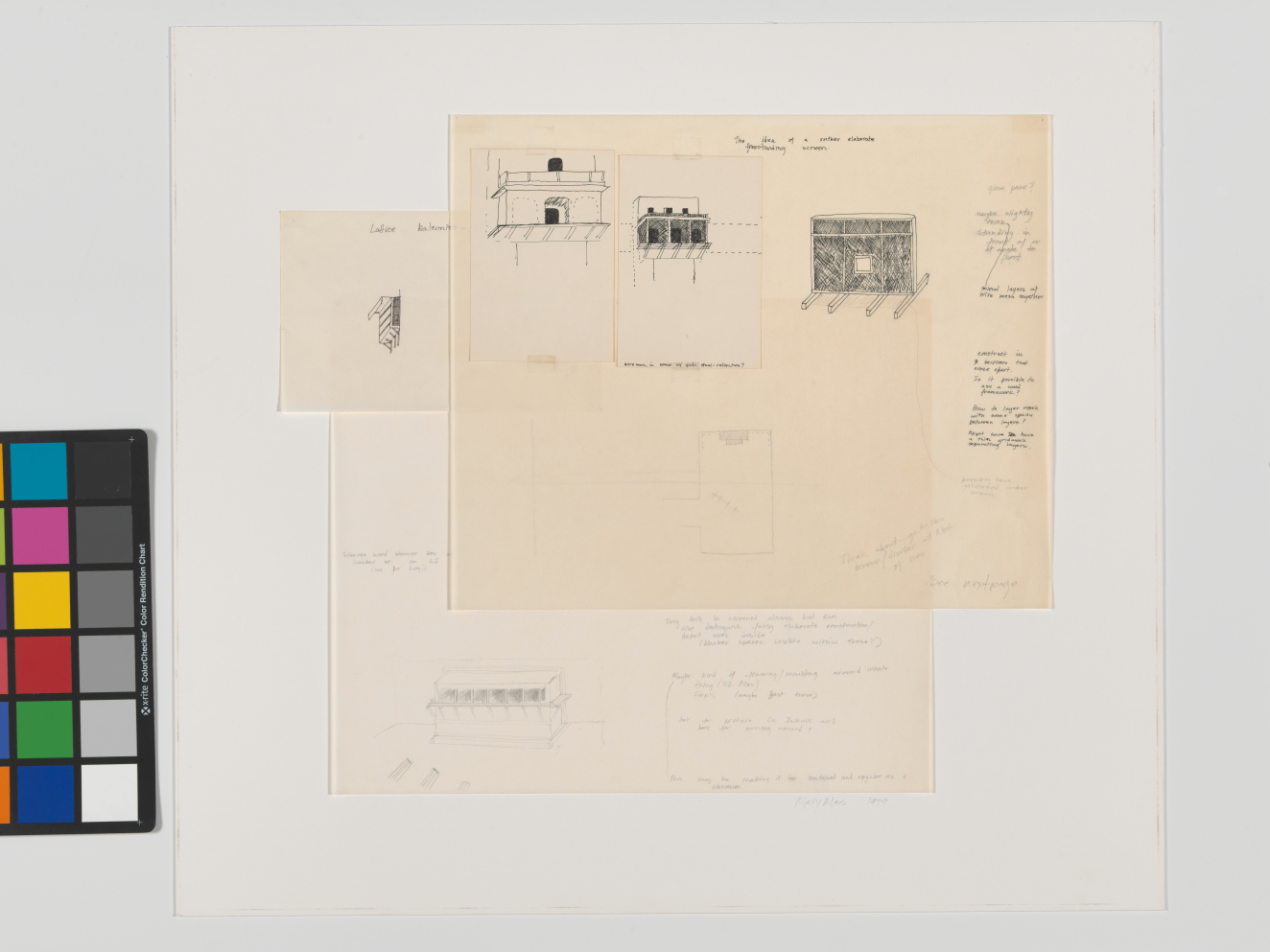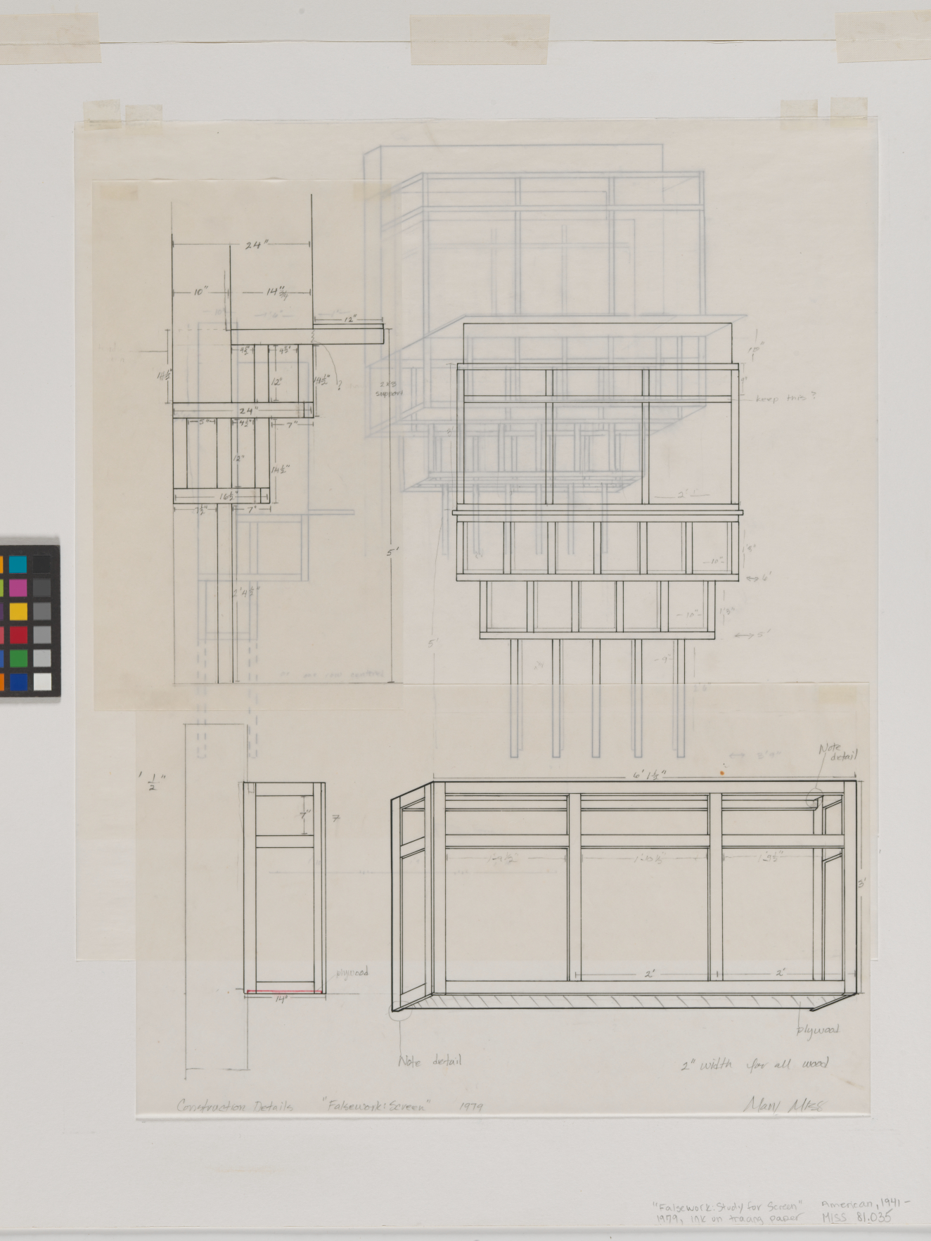 Miss took inspiration from functional structures. In an interview for a Brown University/Unversity of Rhode Island exhibition catalogue in 1981, she said, "I'm trying to pull out imagery that's all around us, but that people just don't use or even pay attention to." The studies for "Falsework: Screen" give great insight into the sources for the thinking process behind the sculpture.