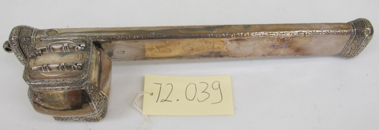The art of the book is represented by miniature painting and calligraphy, as well as by a fine leather bookbinding and by the elegant tools of the calligrapher's trade -- a chased silver pen case and inkwell. Three fine miniatures, dating from the 16th century, present the martial and courtly sides of imperial Ottoman life. They depict Suleyman and his entourage on the march, the Sultan at the palace school, and a sumptuously illustrated episode from The Life of the Prophet.