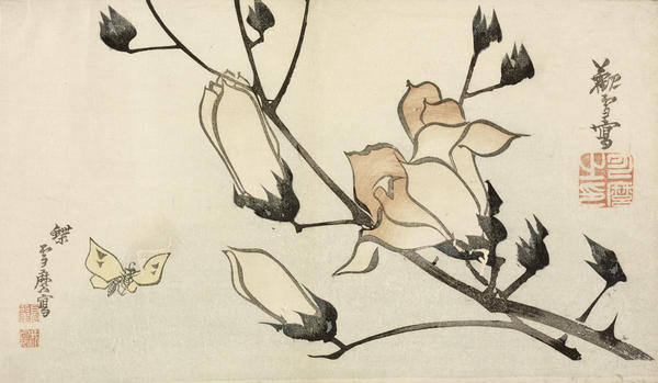 A unique sense of energy and spontaneity pervades these boldly composed still-lifes and nature studies. Their loose and sketchy execution simulates the calligraphic brushwork of painting in the print medium, demonstrating the richly innovative spirit of the Japanese printmaking tradition.