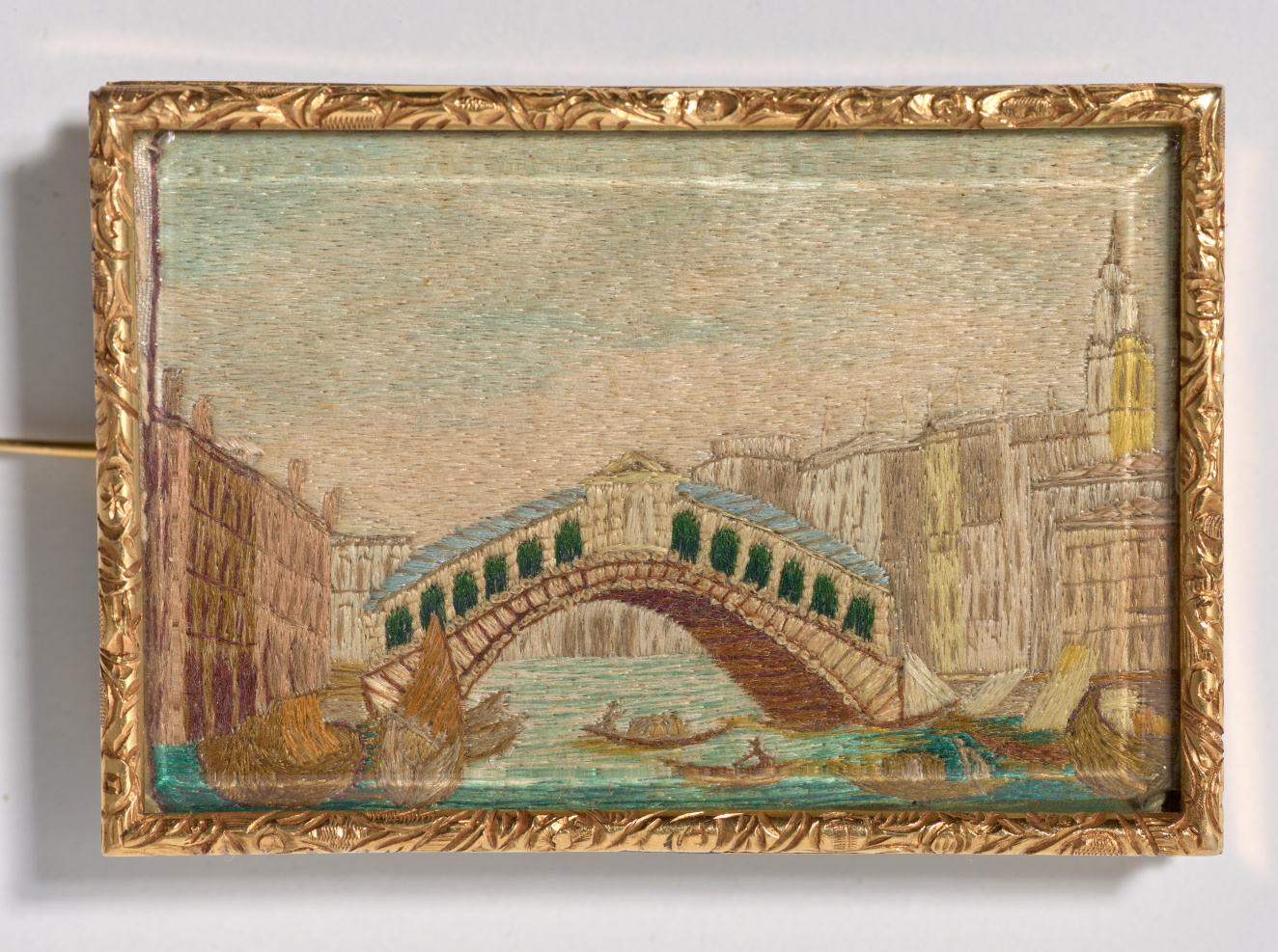 Brooch with Pittura d’Ago (Needle Painting) of the Rialto Bridge Venice