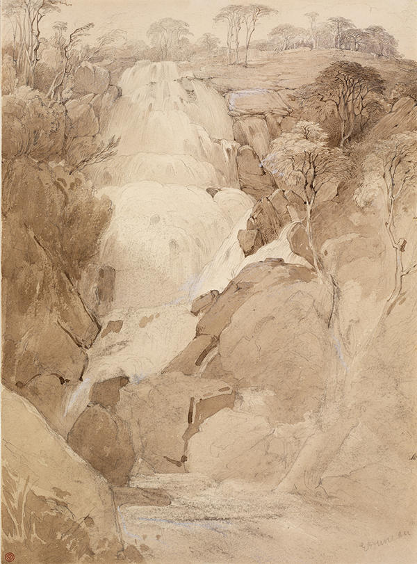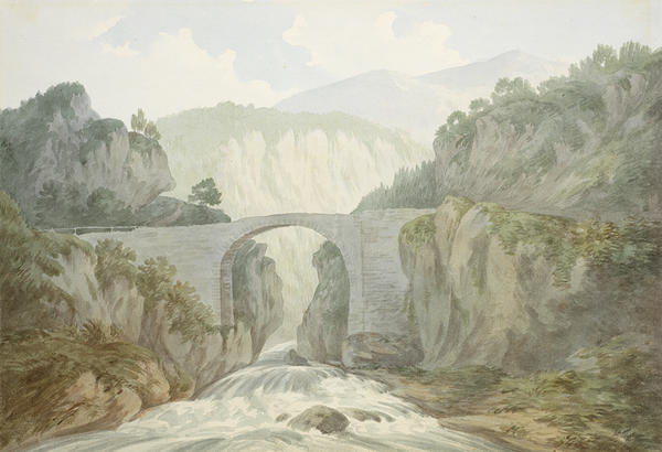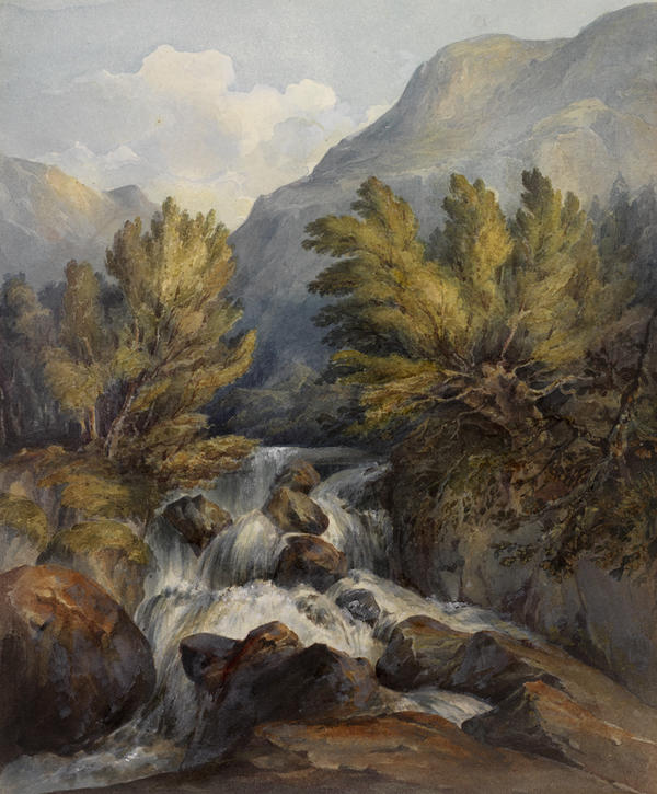 The art critic John Ruskin devoted three chapters of his multi-volume treatise Modern Painters (1843-60) to the depiction of water in all its forms: as clouds, snow, lakes, rivers, oceans, and waterfalls. "What shall we compare to this mighty, universal element, for glory and beauty?" he asked. Portrayals of water, Ruskin further argued, can be a tool for measuring artistic skill, particularly when one examines the degree of truthfulness in pictures of nature's sublime cascades. Selected from the wealth of 18th- and 19th-century British landscapes in the RISD Museum's permanent collection, the nine watercolors and drawings displayed in this gallery challenge us to follow Ruskin's lead by admiring and comparing a century of waterfall imagery.