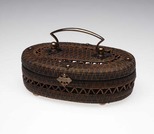 Basketry also makes use of lacquer sap as a sealant. The betel-nut box (acc. no. 2004.12.5.1-5) and some of the purses (acc. nos. 2004.12.29, .31, and .33) in this gallery are sophisticated examples of Thai weaving techniques. Their intricate manufacture is based on coiling systems in which indigenous fibrous materials are woven and then sealed with lacquer.