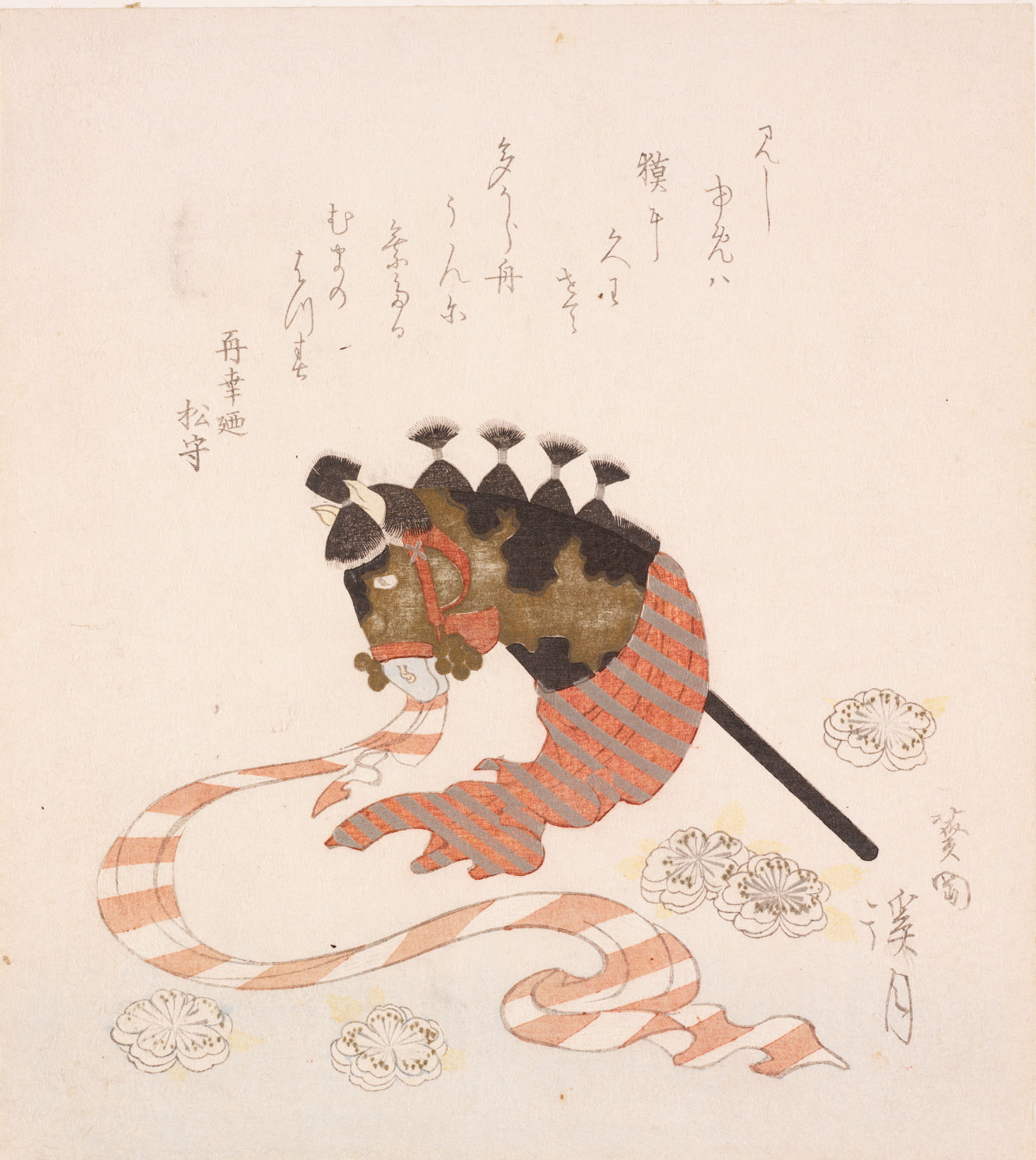 The link between text and image in surimono is an important one. By the early nineteenth century, when most of these objects were made, the image and the accompanying poems were conceived together in what is now regarded as the characteristic format. Whether the poetry referred directly to the subject of the print or played upon the printed image by using word puns and an assortment of allusions, the work of art was always infused with meaning for its educated recipient, as well as a sensuous beauty meant to be savored and enjoyed.