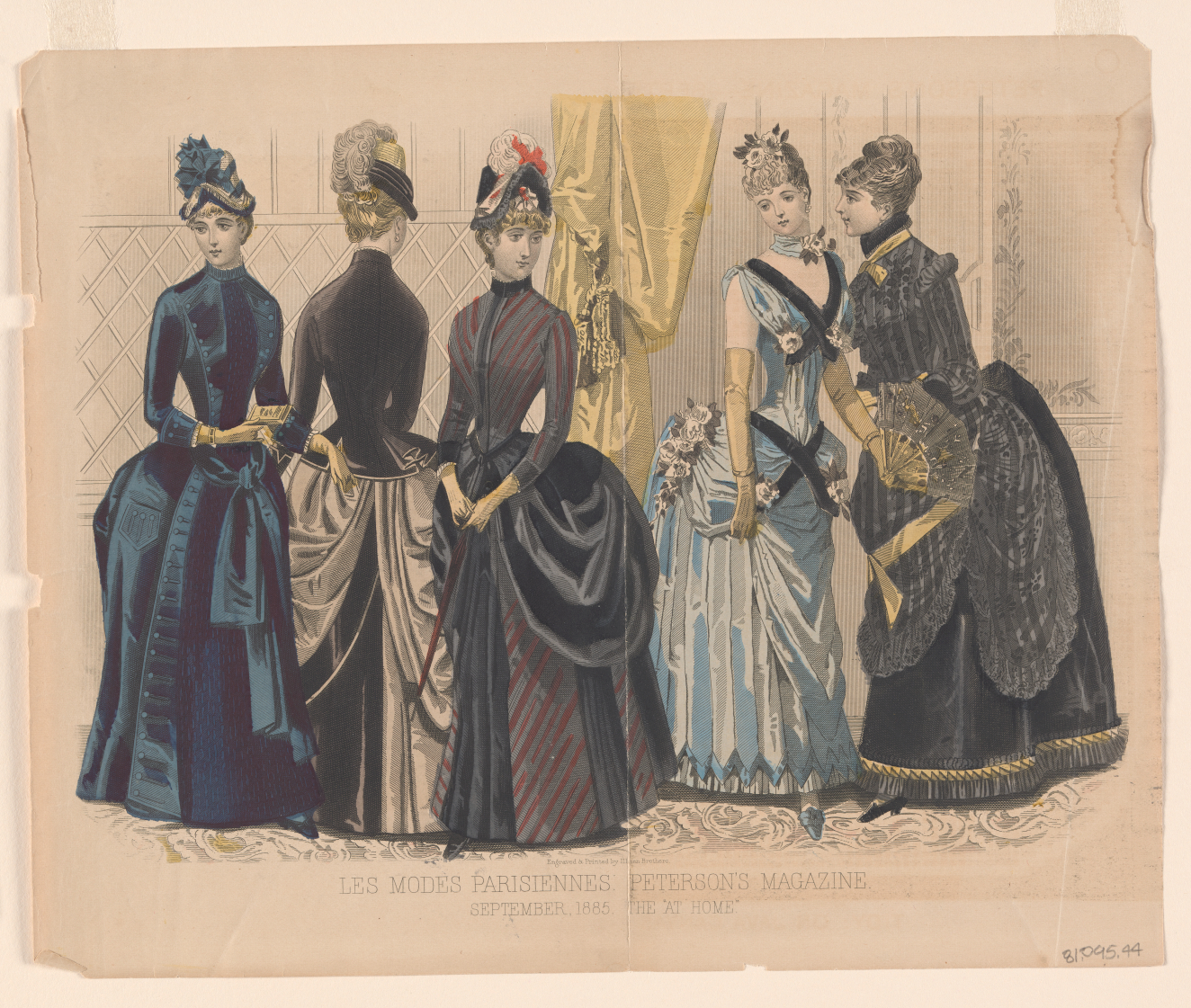In 1890, English designer and activist William Morris quipped that most women dressed as though they were “upholstered like arm-chairs.” Under layers of folds, ruching, tassels, and fringe, fashionable women found themselves nearly buried amid cascades of rich and weighty fabric, on the verge of becoming fixtures in their own drawing rooms. Likewise, a popular French publication had announced in 1868 that “The upholsterer is at the same time the tailor and the milliner of the room.” The distinction between dressing one’s home and dressing the female body threatened to become almost nonexistent.