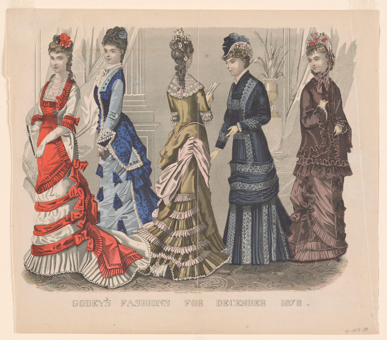 The elaborate late-19th-century fashions on view in this gallery, accompanied by contemporaneous illustrations of modish interiors, exemplify the luxury of material, eccentricities of form, and layering of historical and cross-cultural references typical of the period. They also provide a new framework for interpreting more recent garments that similarly blur the boundary between upholstery and fashion. In this context, opulent late-Victorian garments and avant-garde contemporary ensembles share an artifice that does not often come to light, allowing us to note innovation in historic pieces and tradition in the new.