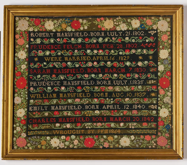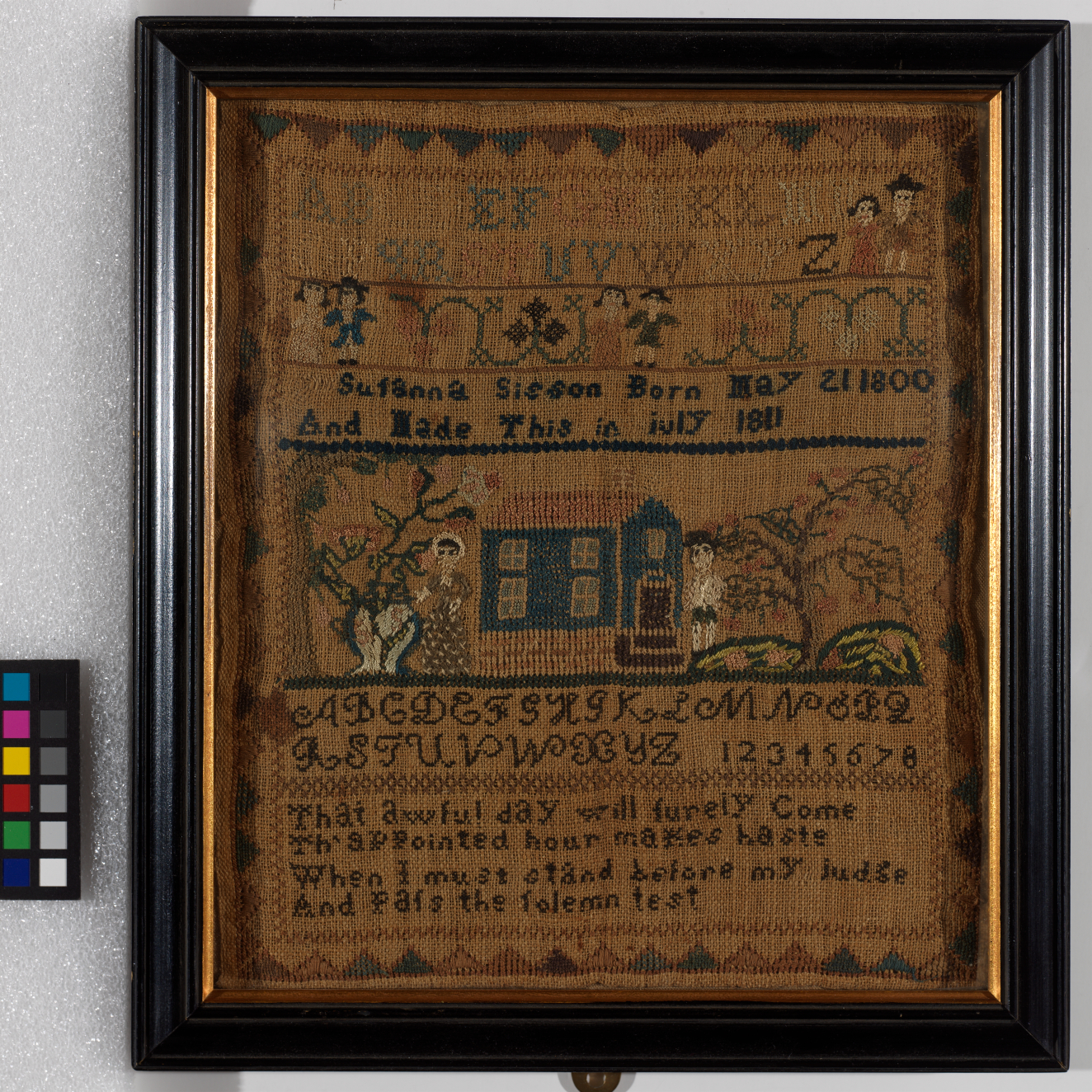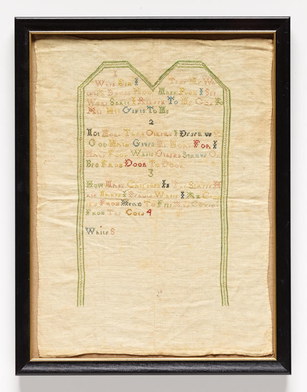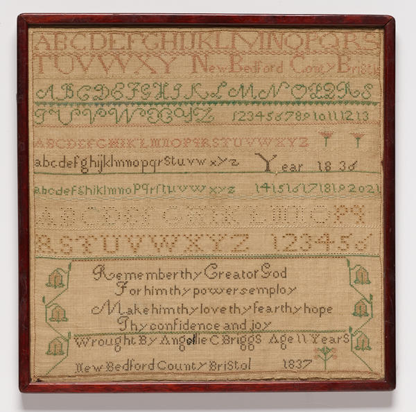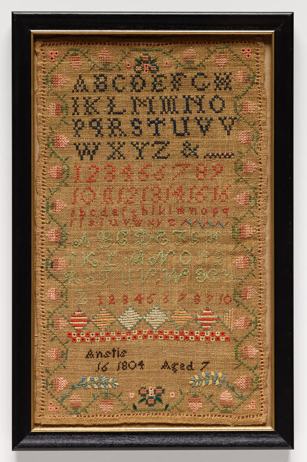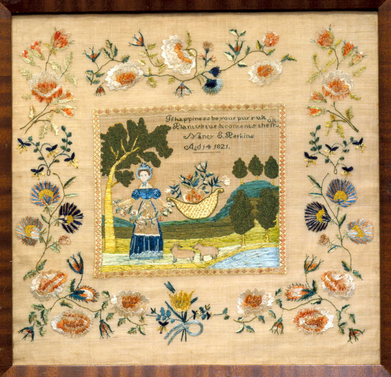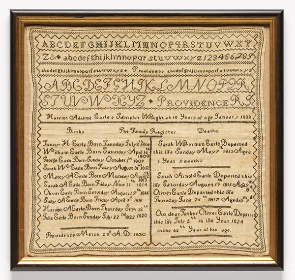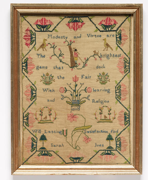 Installation view of These Golden Arts: Needlework by Women, 1688-1888 on view 06-18-1993 through 08-14-1993 at the RISD Museum. These Golden Arts Needlework by Women, 1688-1888 June 18 - August 14, 1993 Installation view of These Golden Arts: Needlework by Women, 1688-1888 on view 06-18-1993 through 08-14-1993 at the RISD Museum. Introduction Exhibition images Related Objects Eliza Winslow Taylor The Tempest Susanna Sisson Sampler Cynthia Burr Sampler Mary E. Brown Sampler No Image Available Unknown Maker, Mexican Textile Charlotte Bicknell Mourning Embroidered Picture Lois Sisson Sampler Nancy Perkins Sampler More objects +