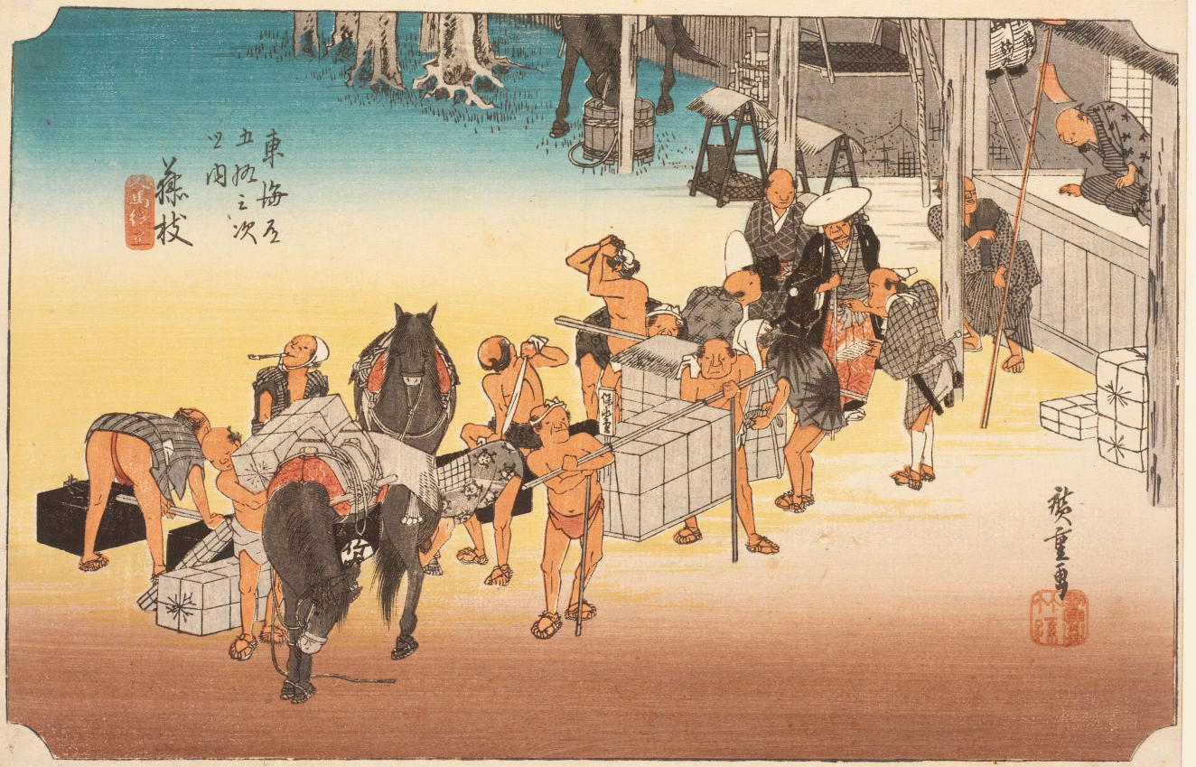 Fujieda: Changing porters and horses (Fujieda jinba tsugitate), Edo Period