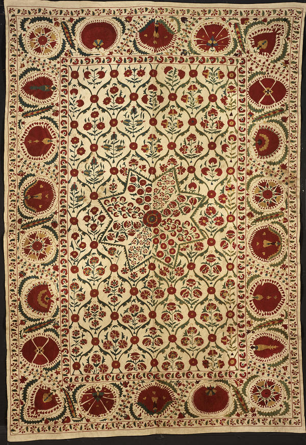 Thanks to funds voted by The RISD Museum's Fine Arts Committee, Curator Madelyn Shaw used this opportunity to acquire a number of contemporary textiles created in traditional suzanni and ikat (tiedyed threads) techniques for the Museum's collection. This exhibition presents a "snapshot" of just a few of today's Uzbek textile arts, enhanced by photographs taken by the group members to document their encounters with the Khiva workshops and with the art and architecture of the Silk Road.