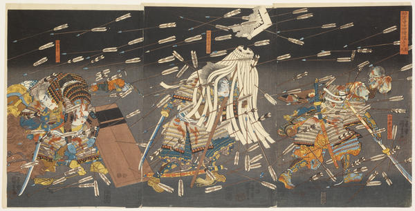 The works of the nineteenth-century printmaker Kuniyoshi and his contemporaries have been described as "decadent" in the traditional history of Japanese printmaking. One glance at the prints exhibited here shows how impressive they are in reality. Kuniyoshi's brilliant colors and bold compositions complement his subjects, which are often drawn from historical narrative or legendary and supernatural tales. His powerful compositions, frequently executed in the form of triptychs, are conceived on a scale unknown before the nineteenth century.