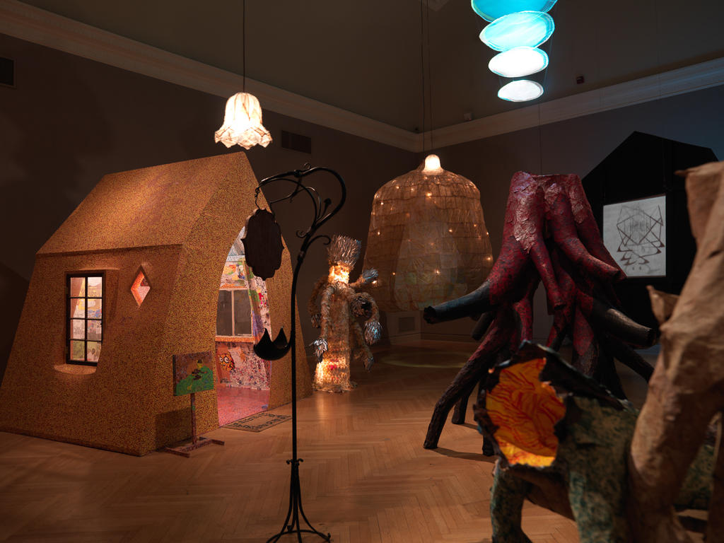 The two-part exhibition "Wunderground: Providence, 1995 to the Present was conceived by eight artists from Providence's thriving art and music scene, at the invitation of the Museum. The Shangri-la-la-land installation in this gallery evolved from the idea of a utopian village. Each artist created new work specifically for the Museum's soaring Main Gallery, a space that traditionally displays 19th-century art. "Wunderground" continued in the adjoining Granoff Galleries with Providence Poster Art: 1995-2005*, representing the work of more than 200 artists.
