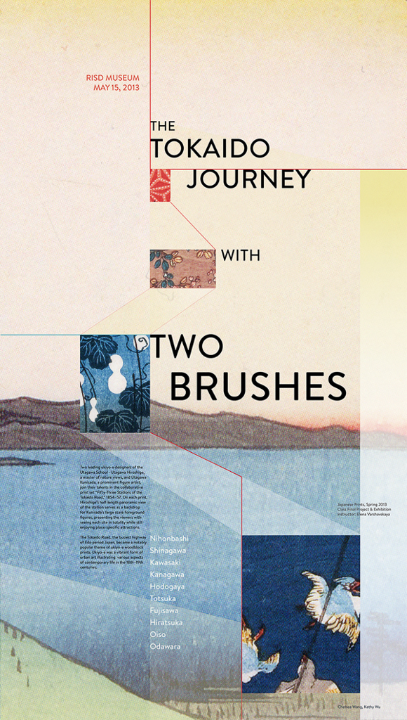 “Wish you were here …” – Hiroshige was the title of a Japanese print exhibition that was curated by RISD students and on view for three hours in Fall 2014 in a classroom at the RISD Museum. Originally an art history class project, the exhibition has since become the foundation for the gallery rotation opening in one of the Museum’s Asian art galleries in May 2015. Tested thrice in the past two years, this “curatorial” approach to art history instruction puts emphasis on active learning from objects. It also provides a real-life opportunity for RISD students to practice a wide range of activities that together constitute the work of an art historian.