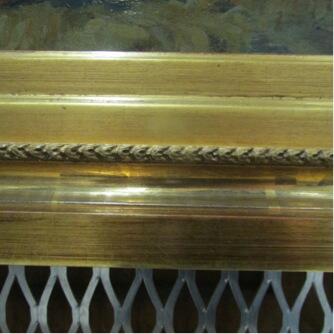 Gilding is often distinguishable from paint when the overlapping edges of the sheets of gold are visible to the naked eye and are parallel to one another across the gilded surface (see above). It is important to recognize that gilding can be applied and adhered to the frame surface by means of either oil or water or in many cases both techniques. These techniques have specific implications in terms of care and maintenance of the gold surface over time. The gold sheets used in gilding are typically 1/1000 of an inch thick! Water gilding is often burnished to a bright sheen using a tool composed of a stone agate; oil gilding is unburnished and generally has a more matte appearance. Water and oil gilding can be present on the same frame.