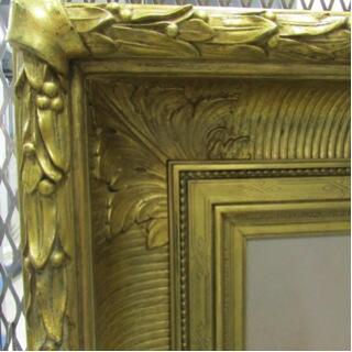 Some frames are recycled or “upcycled” over time; this is most easily observed on the reverse. It is evident often when there are clear straight breaks in opposing corners on the reverse. Close observation on the front of the frame would also reveal an abrupt end of an ornamental pattern and the beginning of a new pattern. It is not unusual to find that frames have been cut down to re-size them to other works of art. This is not a procedure which should be condoned, however, because frames can be as old as the painting held within, and valuable in their own right.